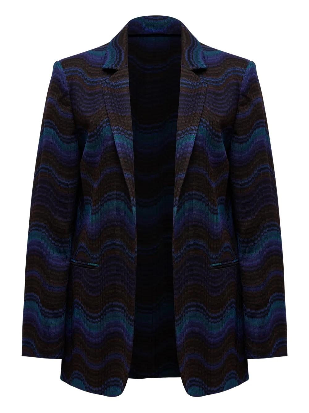 blue and green wave pattern front welt pockets long sleeves notched lapels The item you receive may differ slightly from the item photographed. This is due to the artisanal nature with which all Missoni products are constructed.