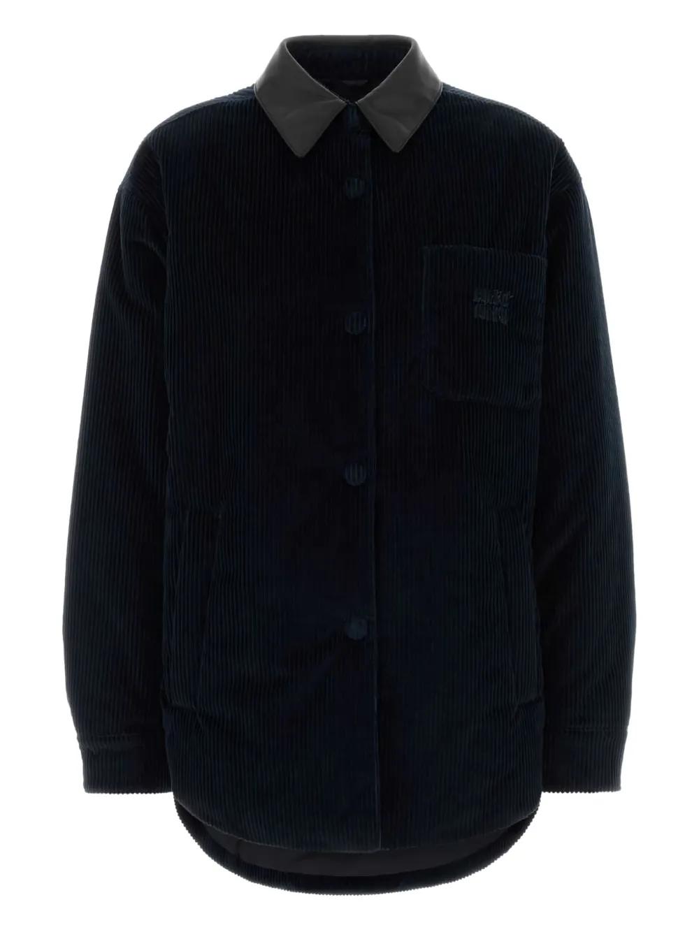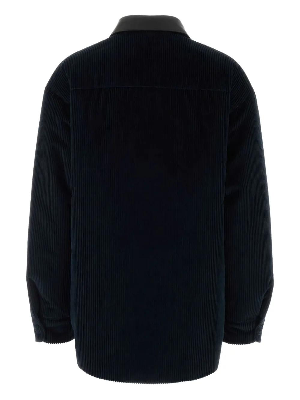blue corduroy leather collar button fastening chest pocket long sleeves