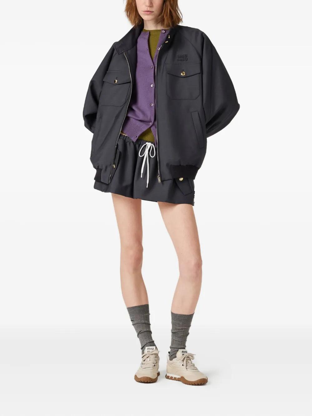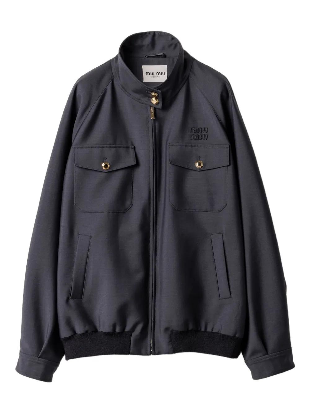 Miu Miu embroidered logo ribbed-knit jacket - Grey