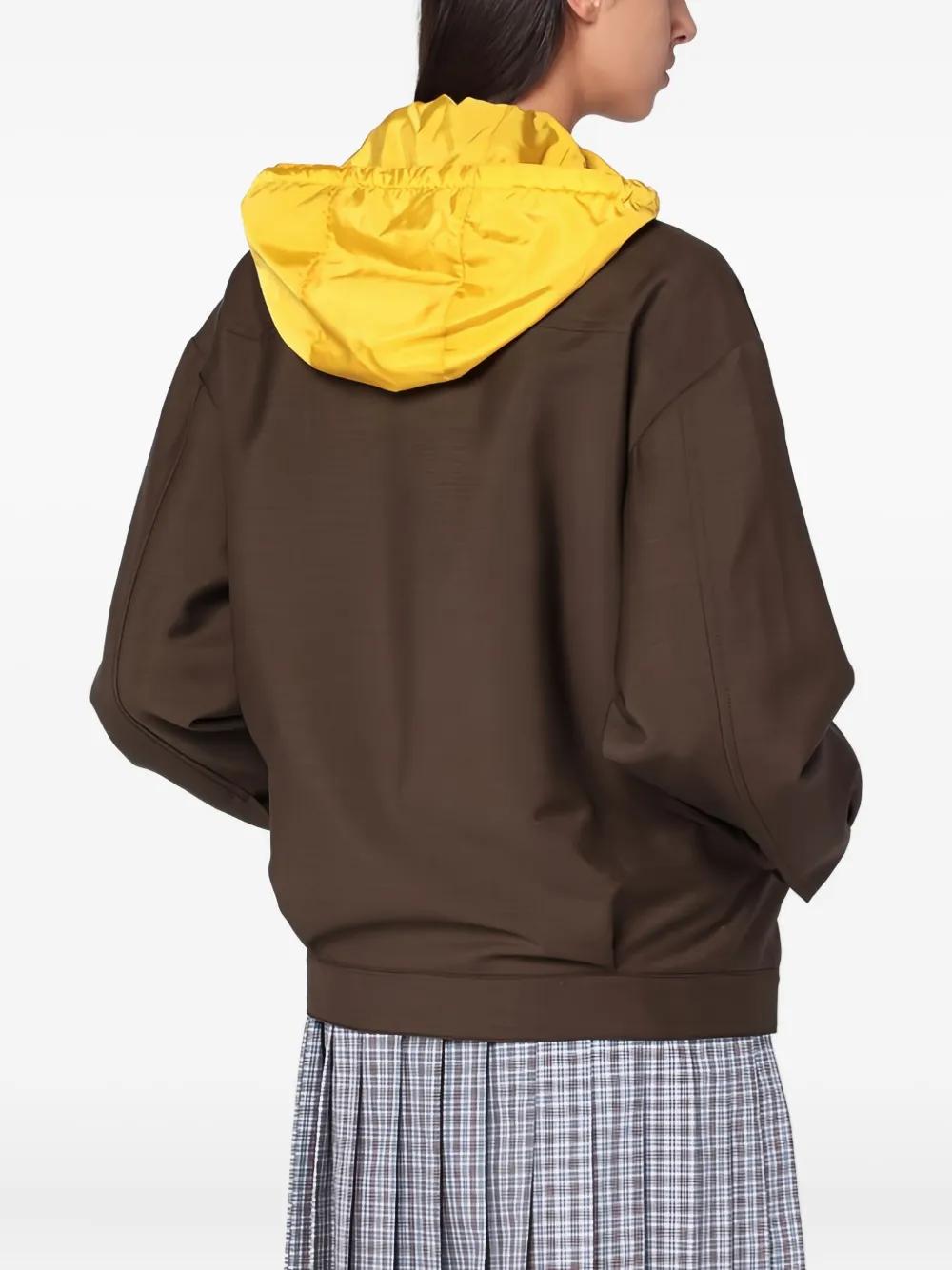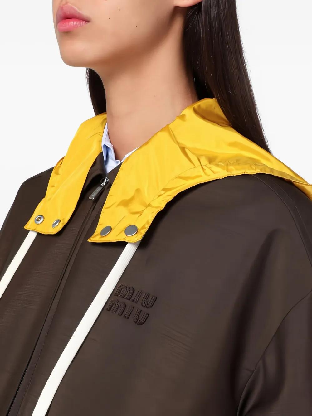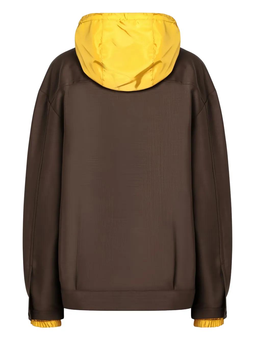 brown/yellow drawstring hood front zip fastening long sleeves logo detail ribbed cuffs
