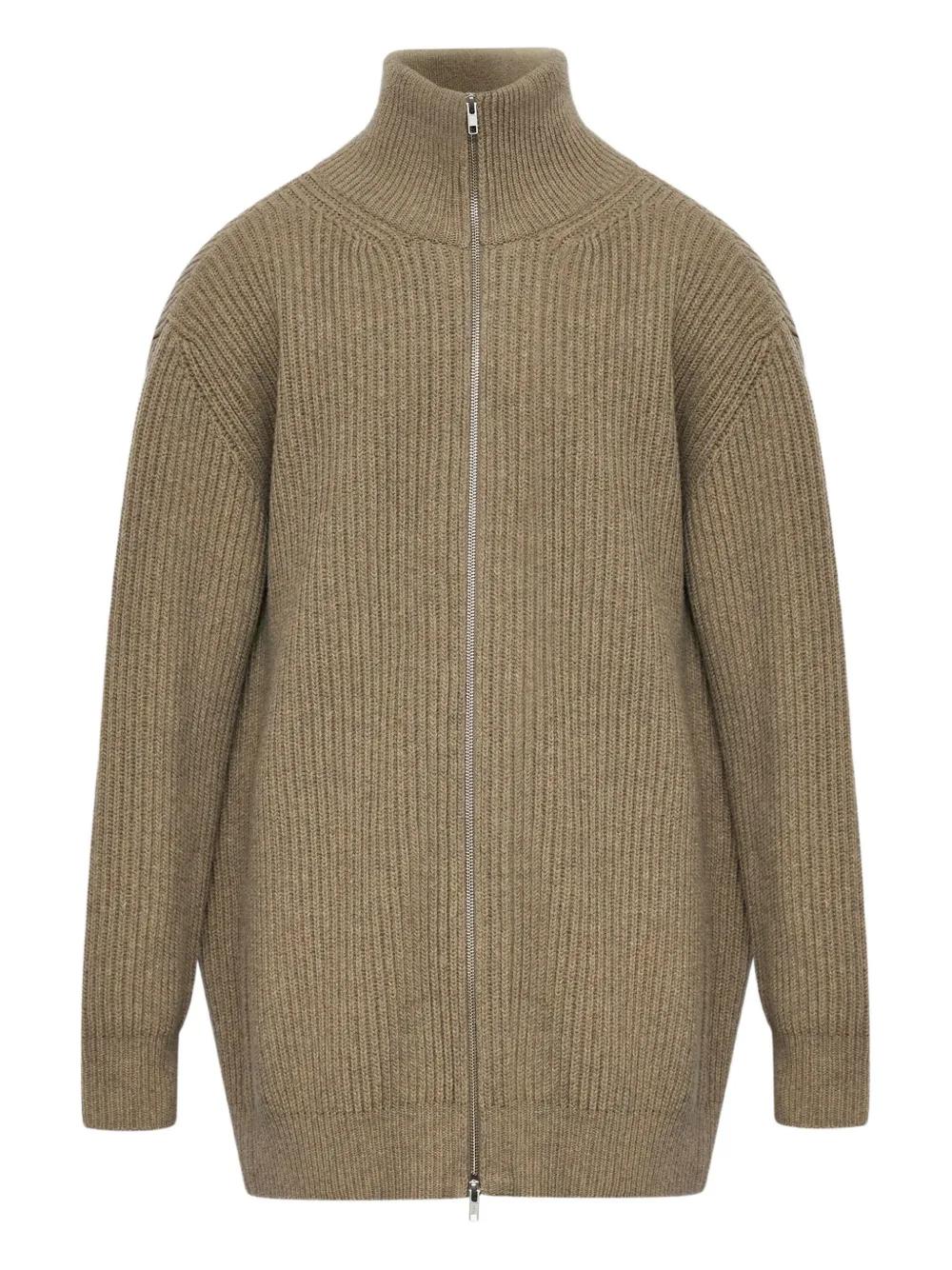 earthy green high neckline long sleeves vertical ribbing zip fastening