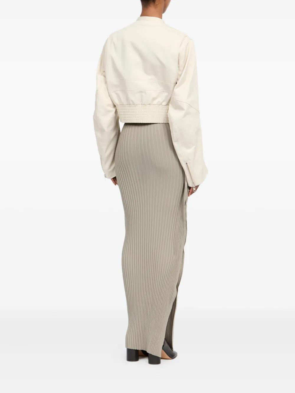 off-white zip fastening ruched hem long sleeves zip detail at the cuffs round neck