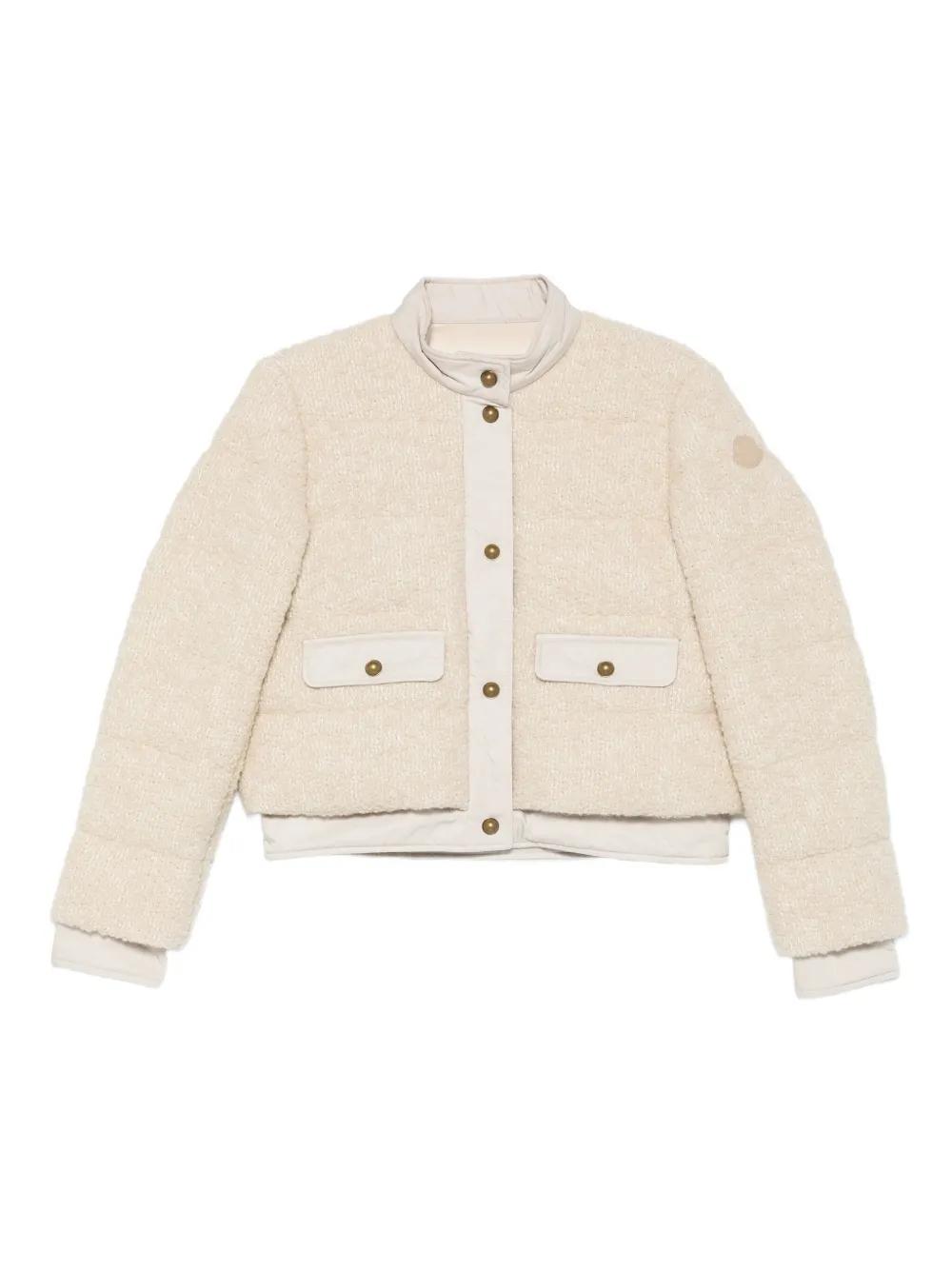 beige front button fastening two front pockets round neck long sleeves logo patch