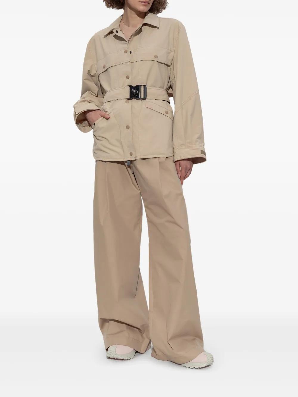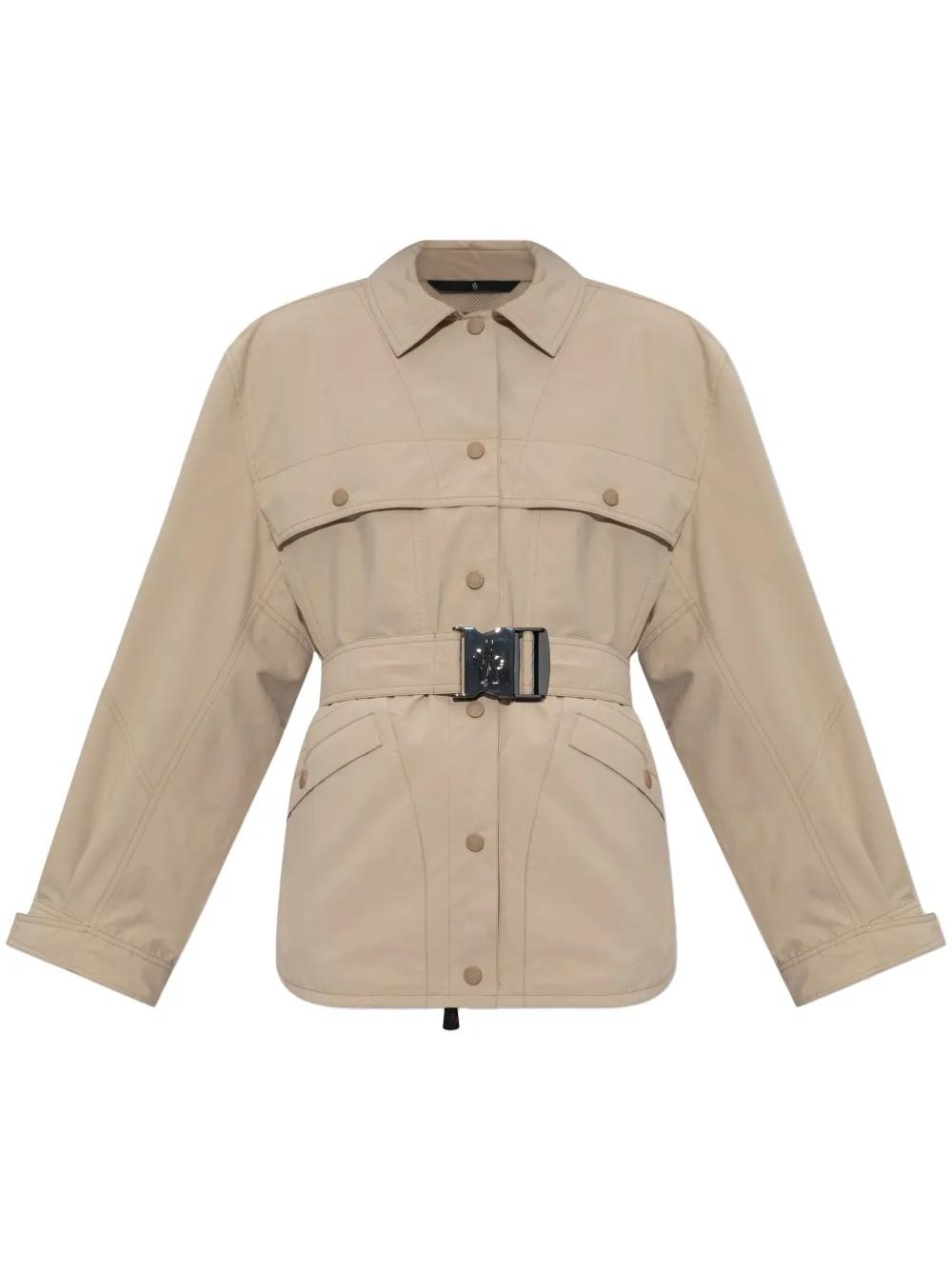 light beige front press-stud fastening four front flap pockets belted waist storm flap