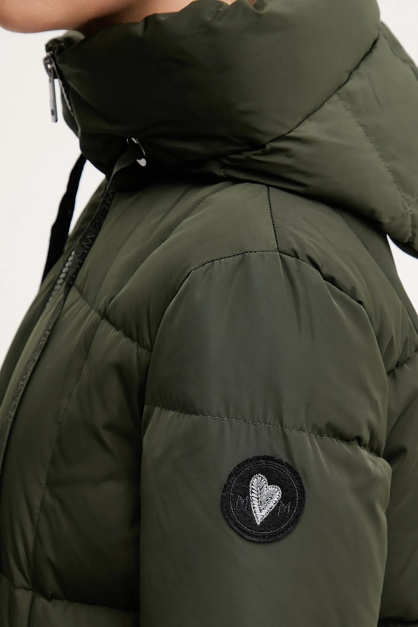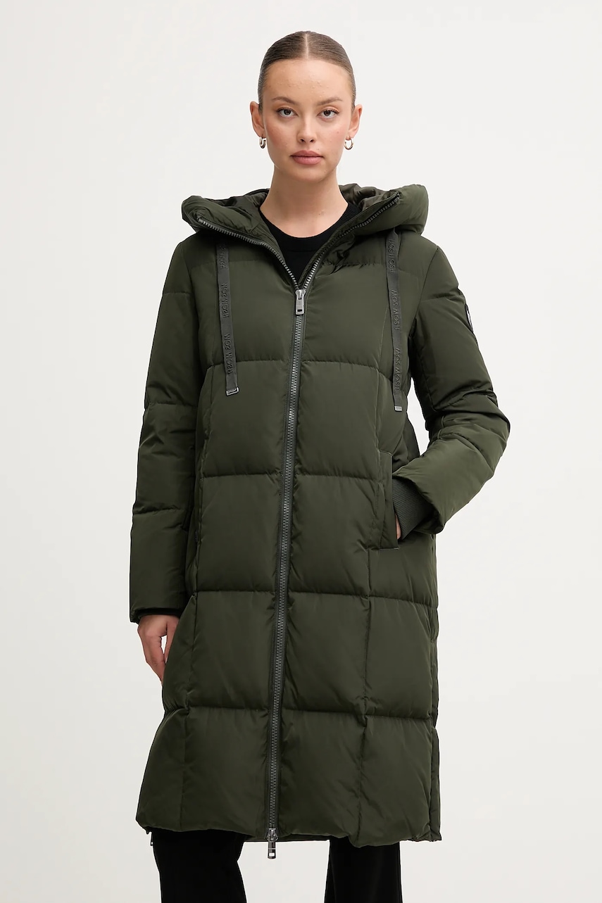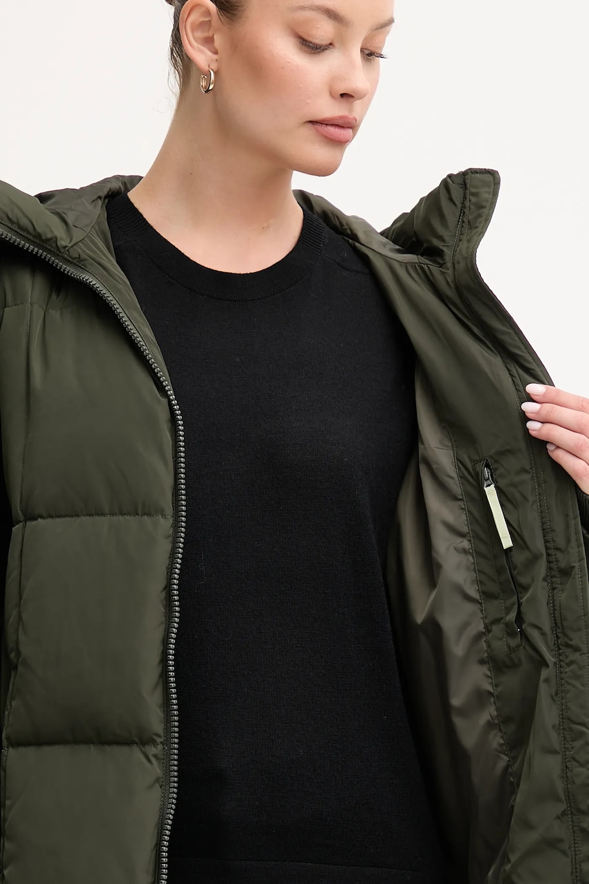 - Ocieplony model na podszewce. - Wypełnienie z naturalnego puchu i pierza. - Pikowany model. - Prosty fason. - Nieodpinany kaptur z troczkami. - Podwyższony kołnierz. - Zapinane kieszenie. - Zapięcie na suwak. - Wykończenie ze ściągacza. - Gładki materiał. - Długość rękawa: 65 cm. - Długość: 100 cm. - Szerokość pod pachami: 51 cm. - Szerokość w ramionach: 43 cm. - Wymiary podane dla rozmiaru: S.