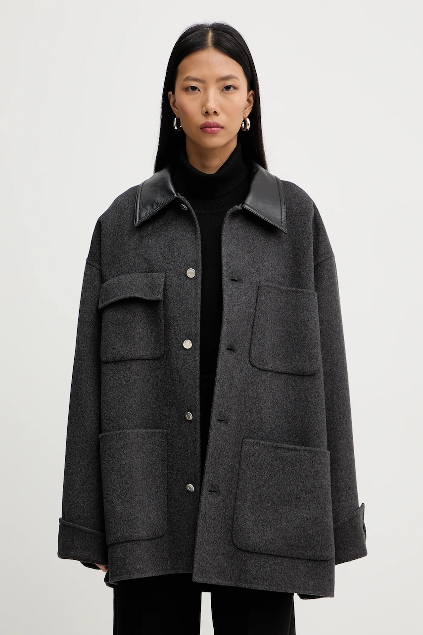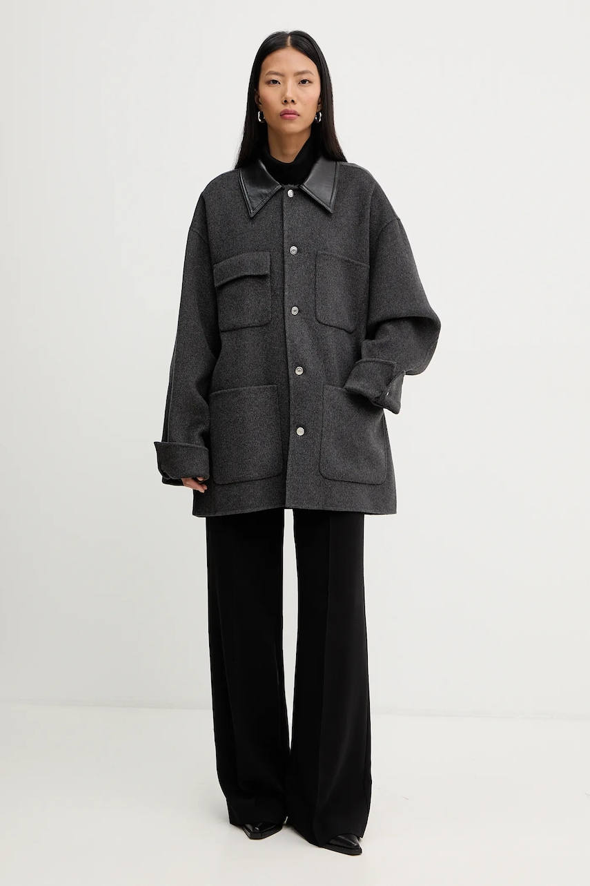 Nanushka kurtka z domieszką jedwabiu NU25FWJK06794 kolor szary przejściowa CAMILO