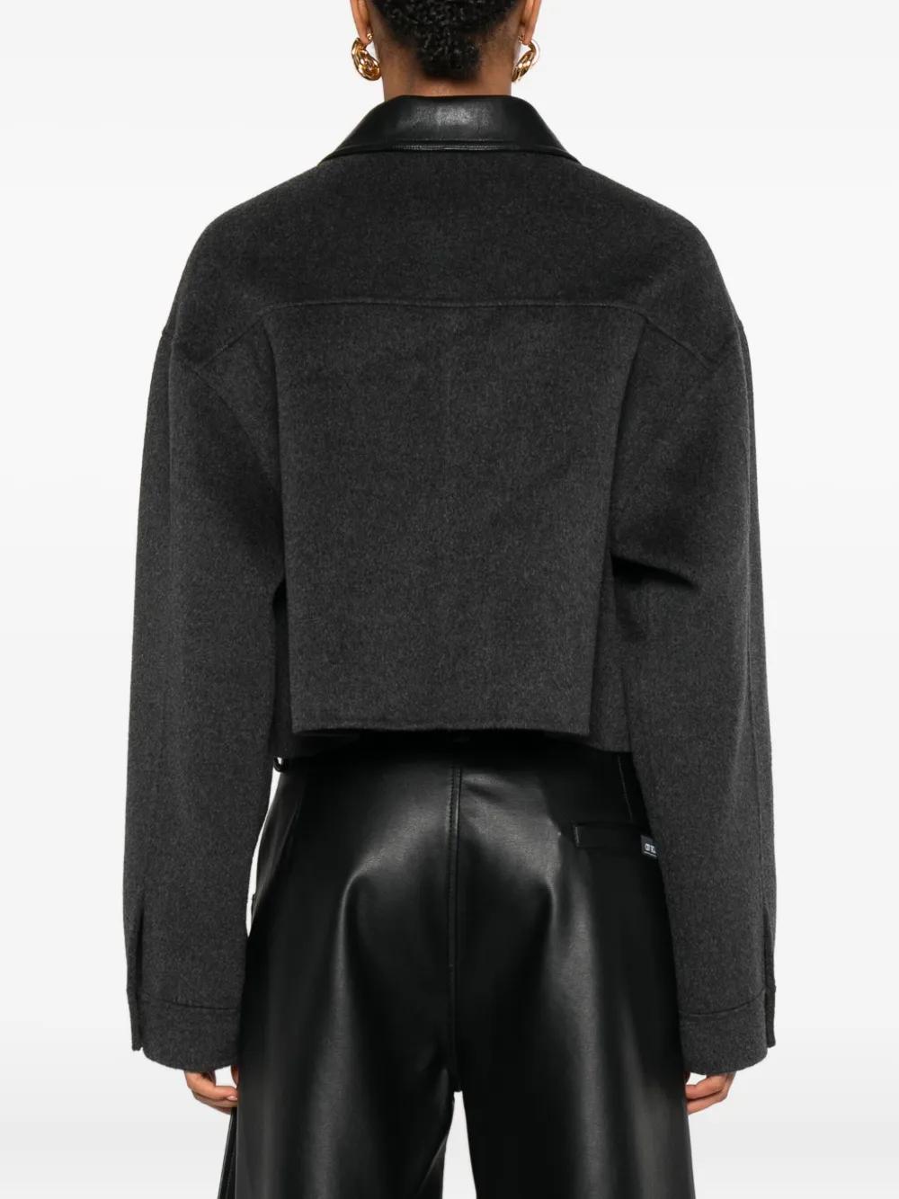 grey leather collar zip fastening long sleeves straight hem