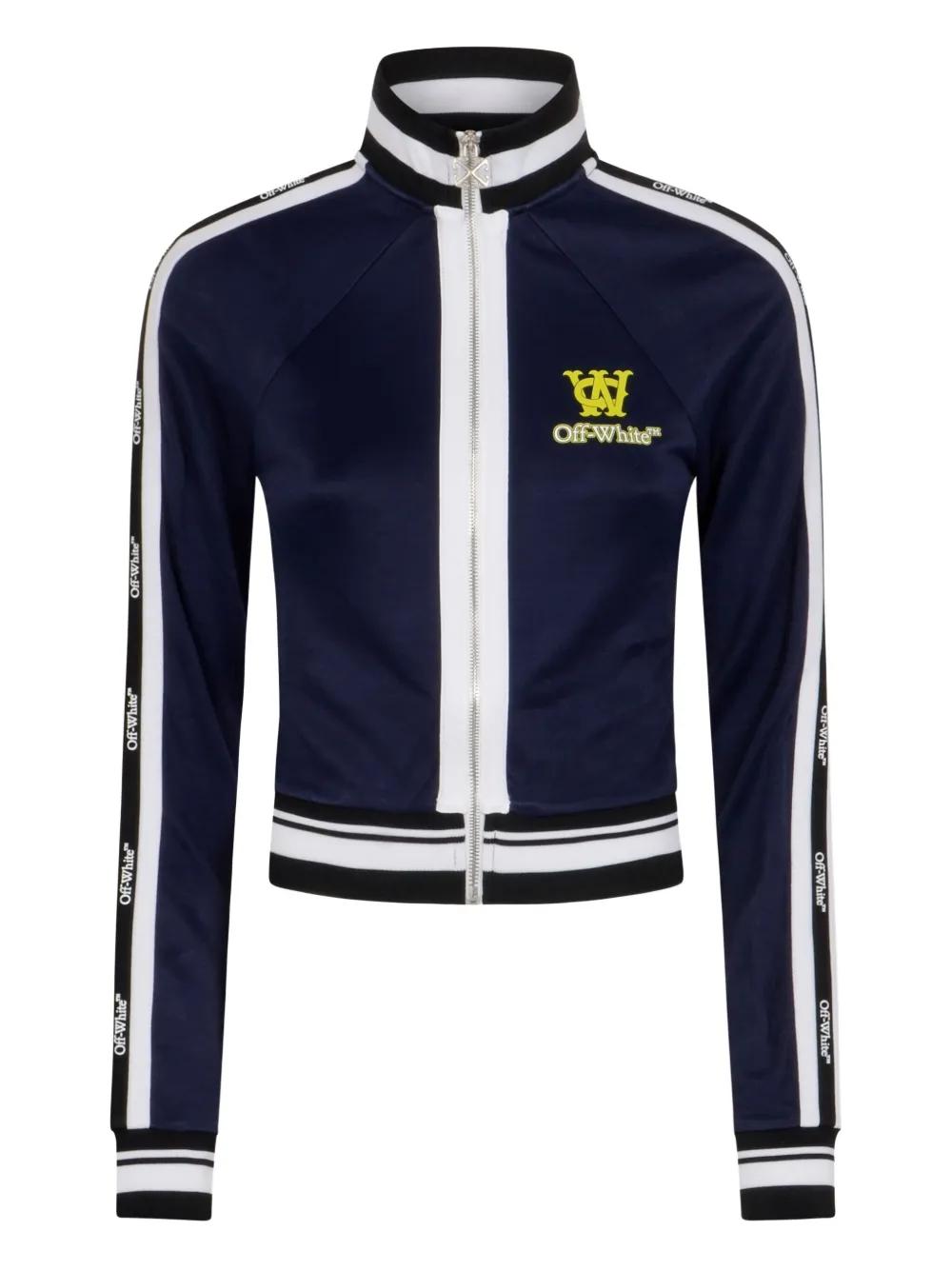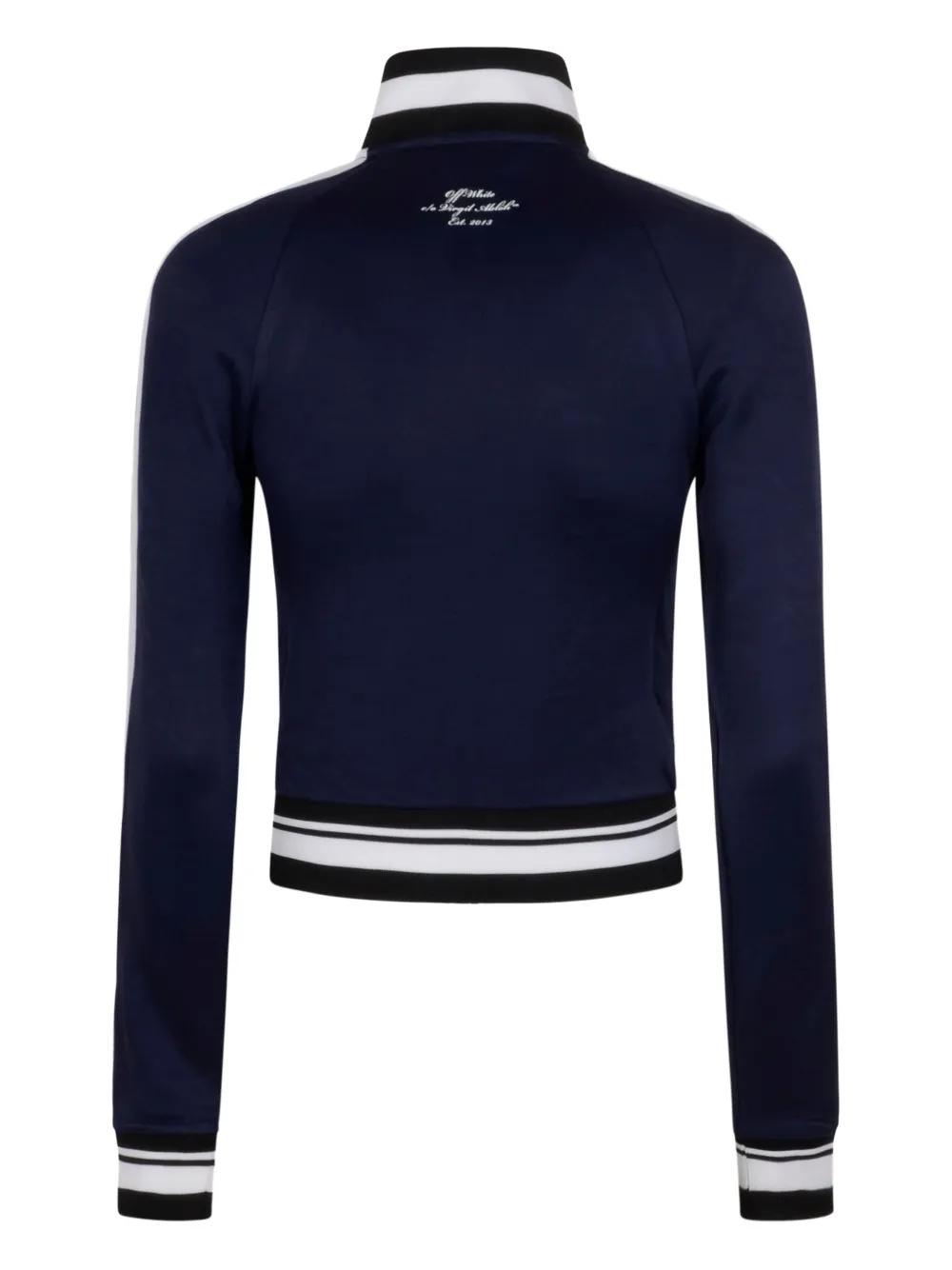 iris blue logo at chest ribbed details zip fastening stripe detail high neck