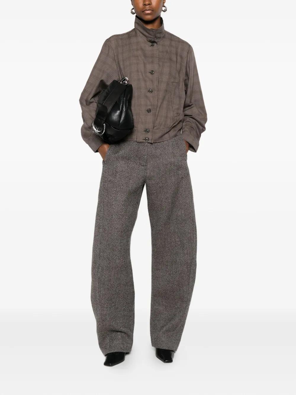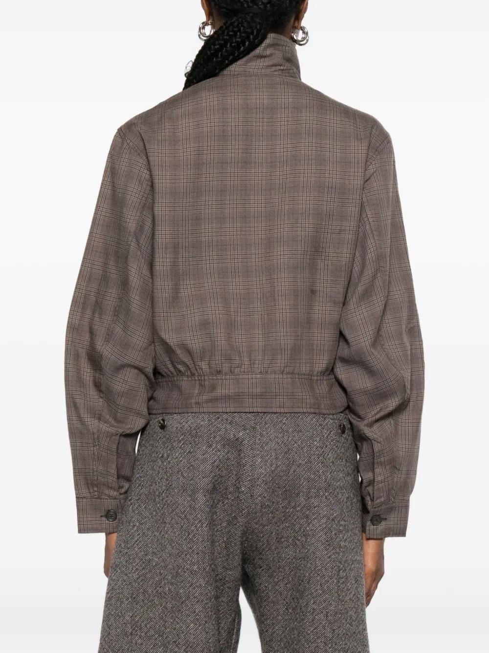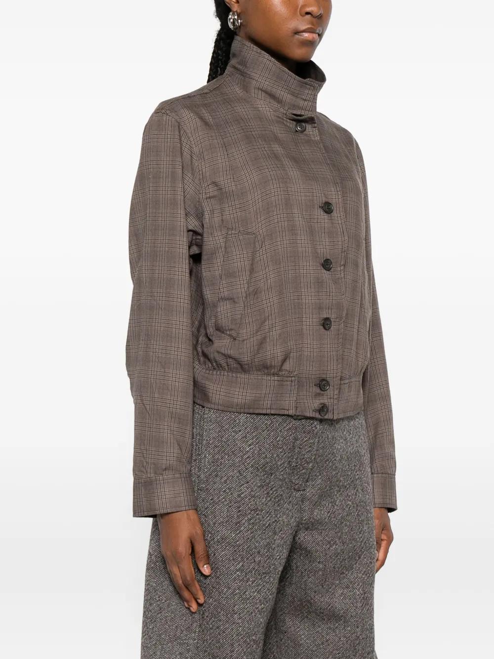 brown checked pattern front button fastening spread collar side welt pockets long sleeves