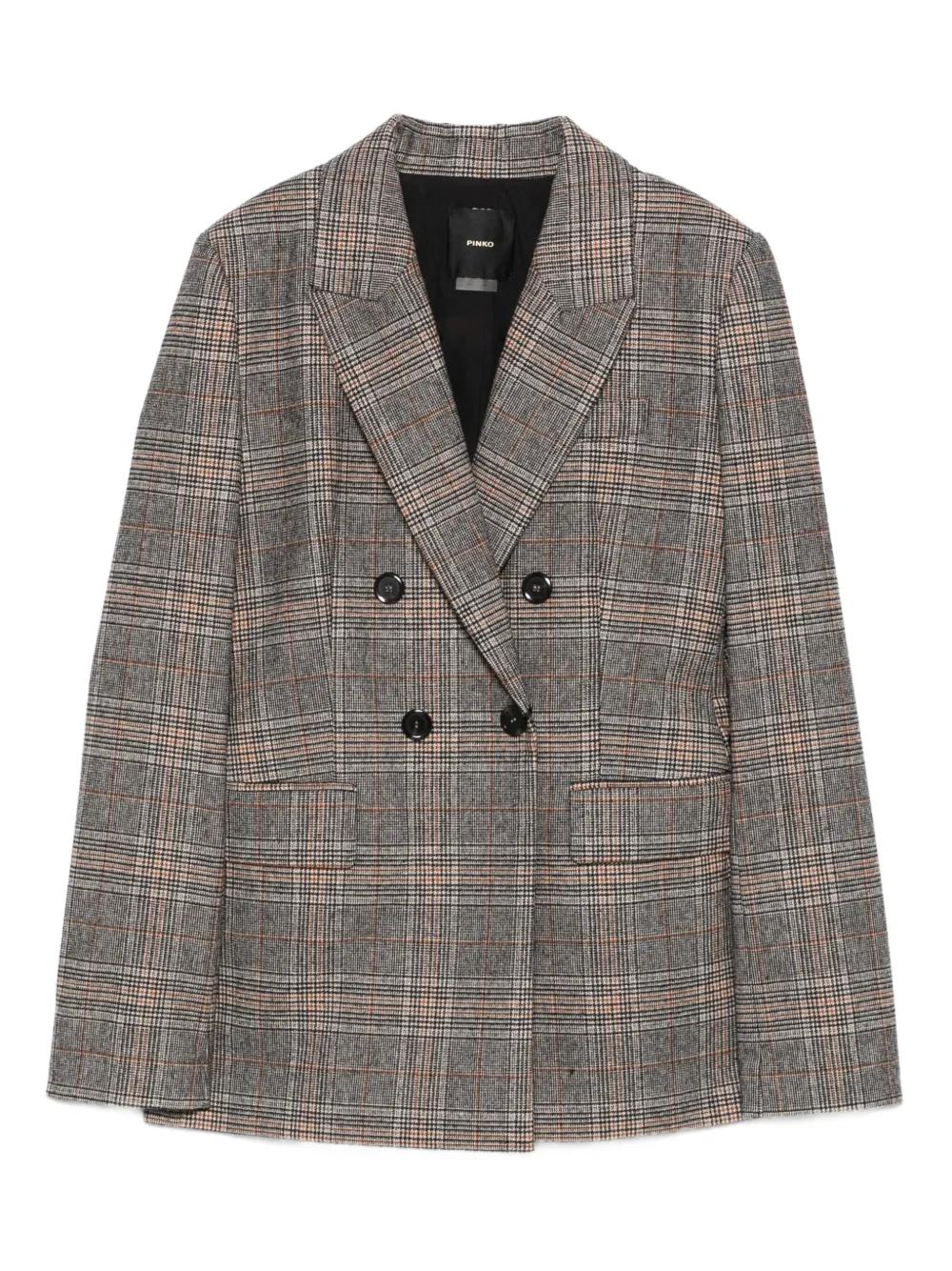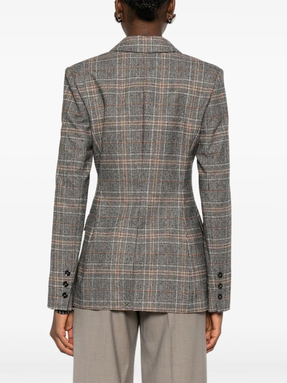 grey checked pattern double-breasted fastening notched lapel long sleeves