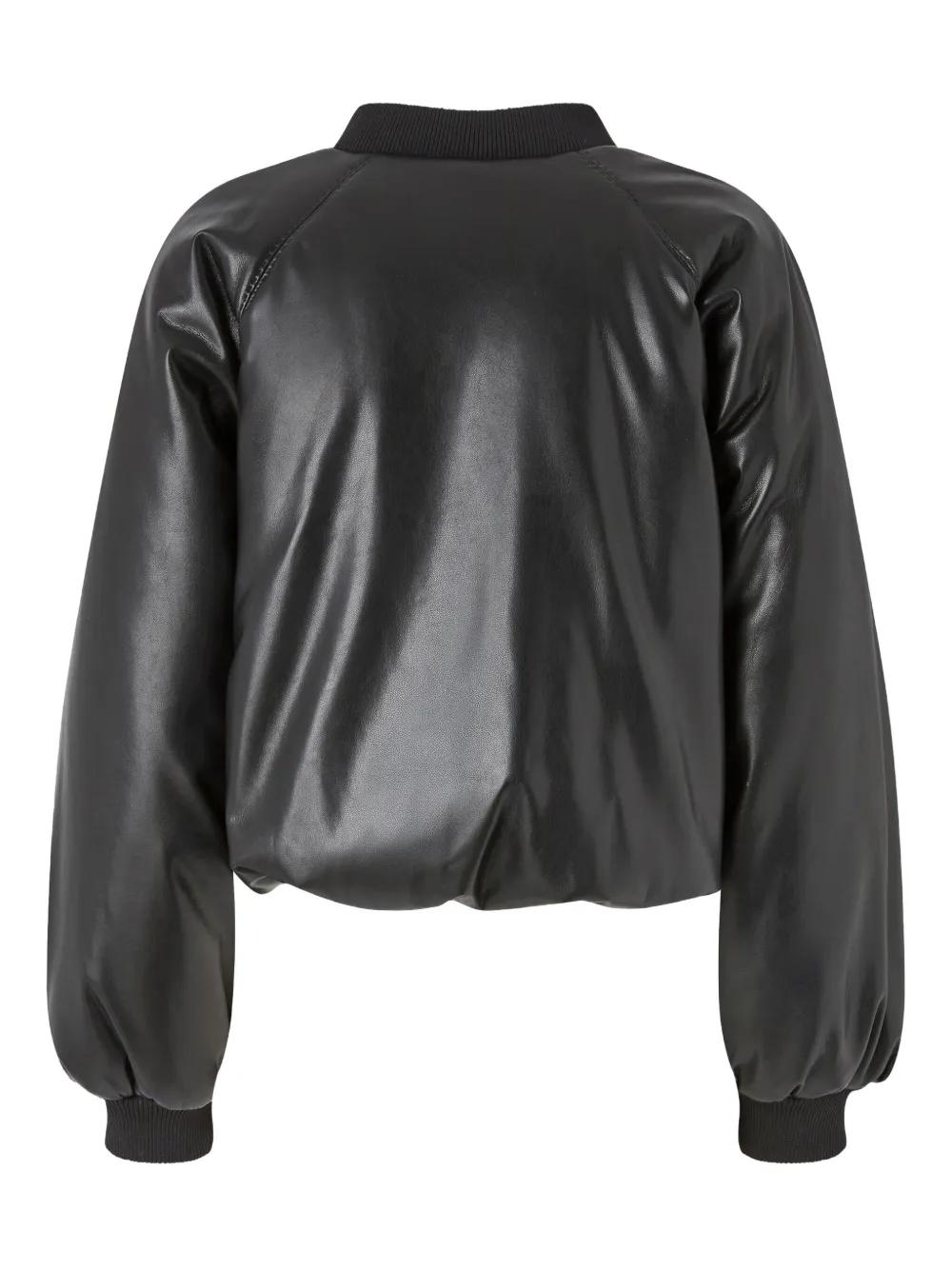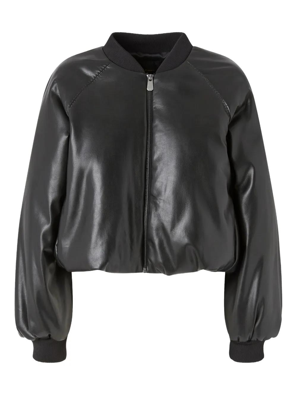 black ribbed knit bomber collar raglan shoulders side pockets gathered hem front zip closure