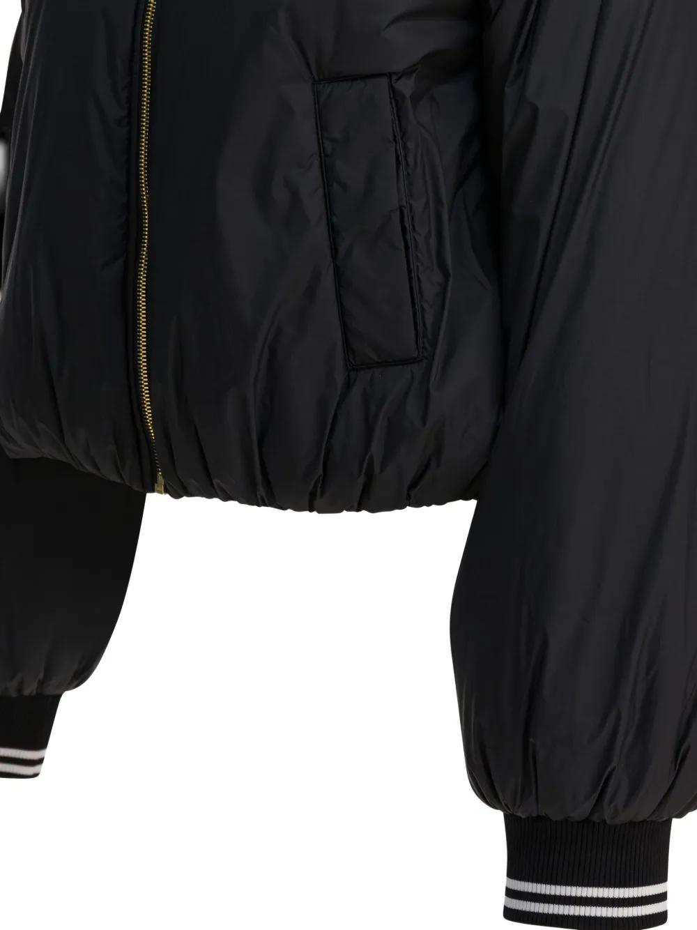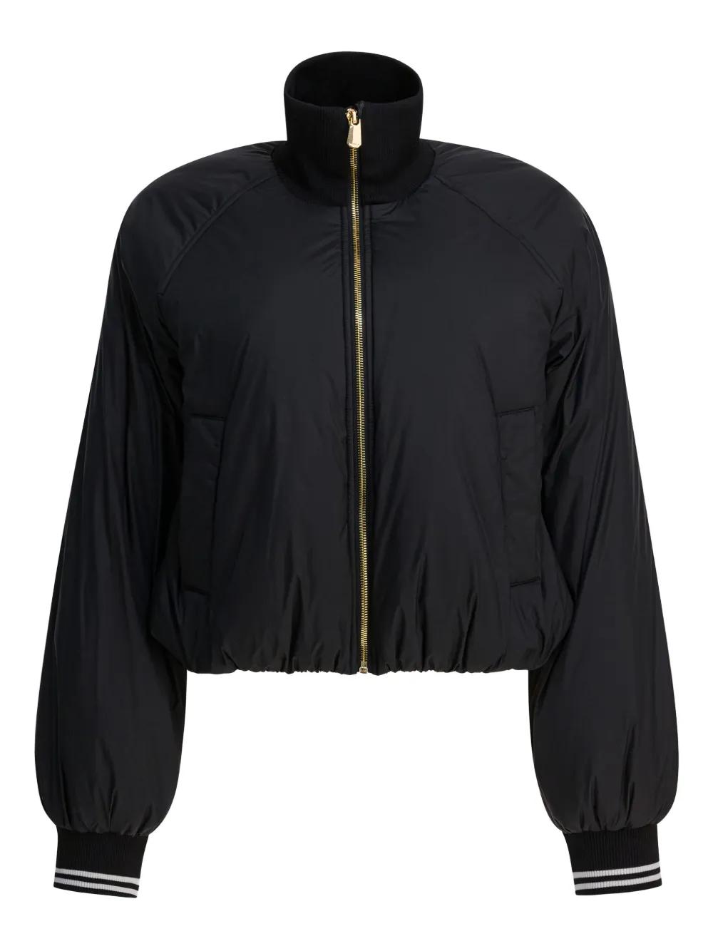 black front zip fastening gold-tone hardware ribbed cuffs high neck elasticated hem