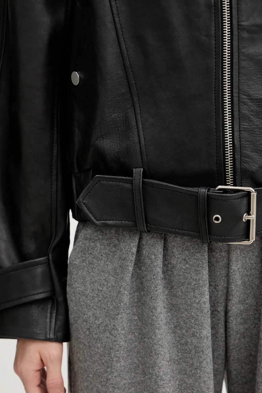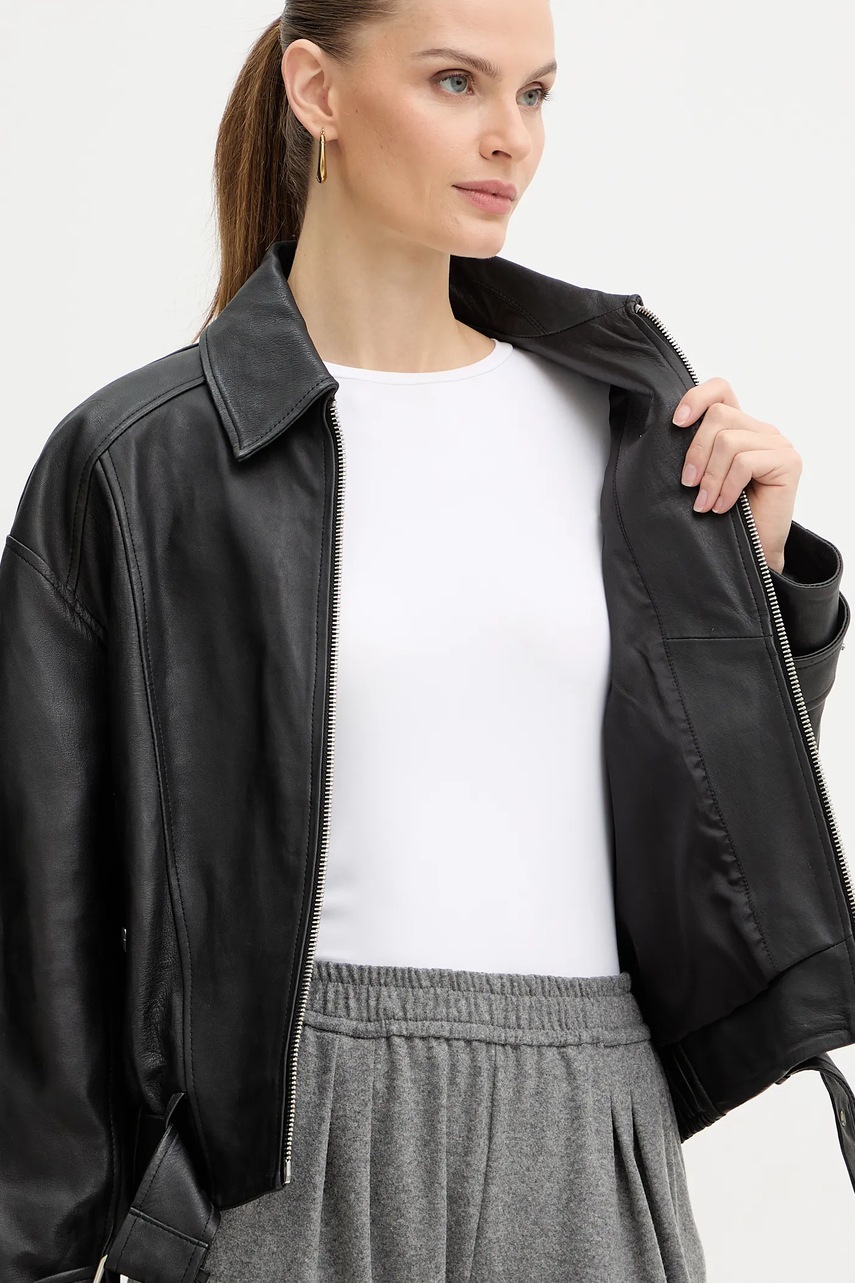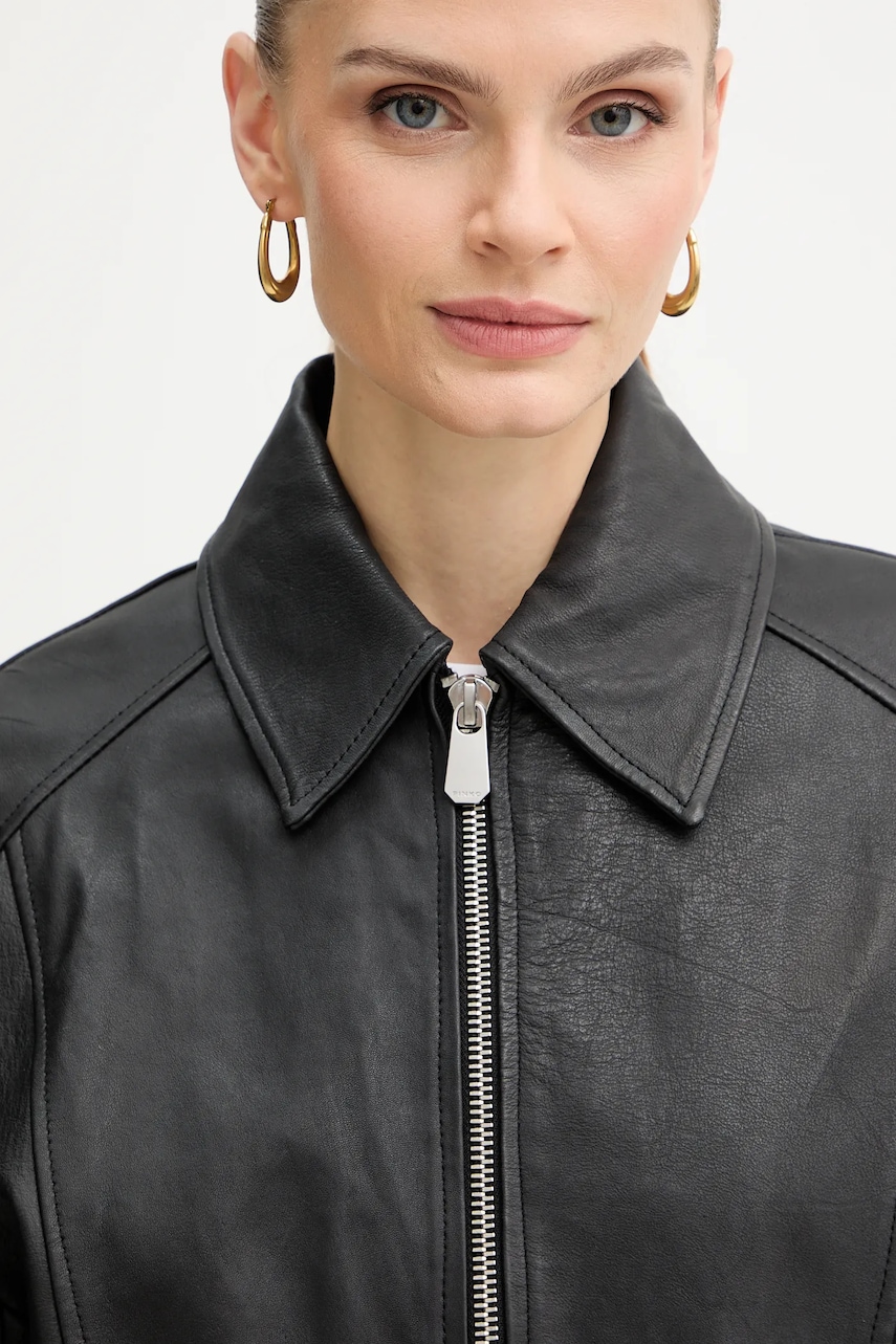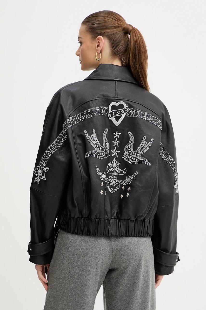 Pinko kurtka skórzana kolor czarny przejściowa oversize 105793 A2U7