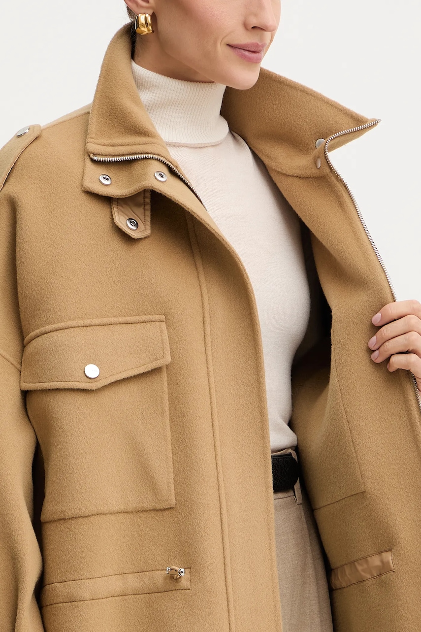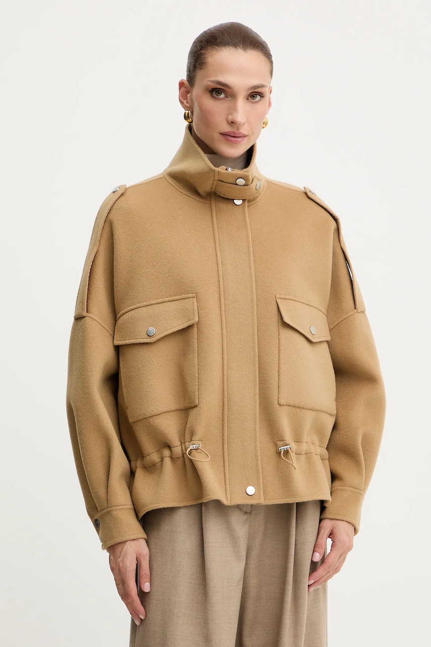 Pinko kurtka z dodatkiem wełny kolor zielony przejściowa oversize 105341 A2XM