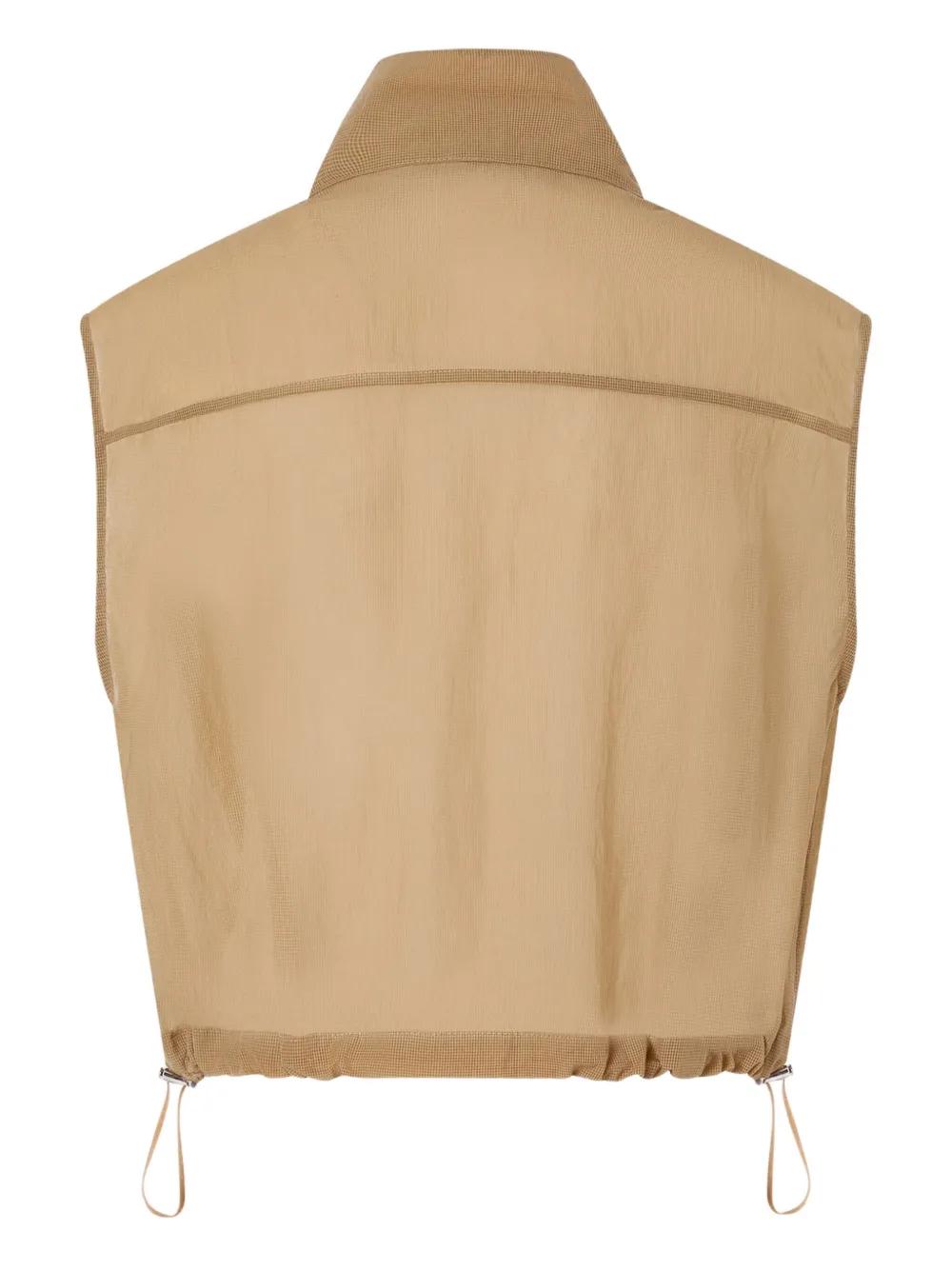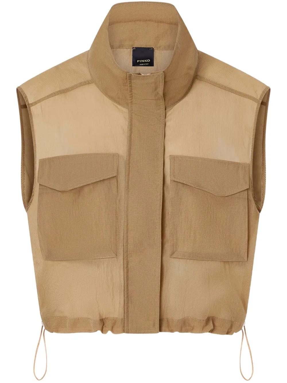 light brown concealed front zip fastening high neck drawstring hem two chest flap pockets