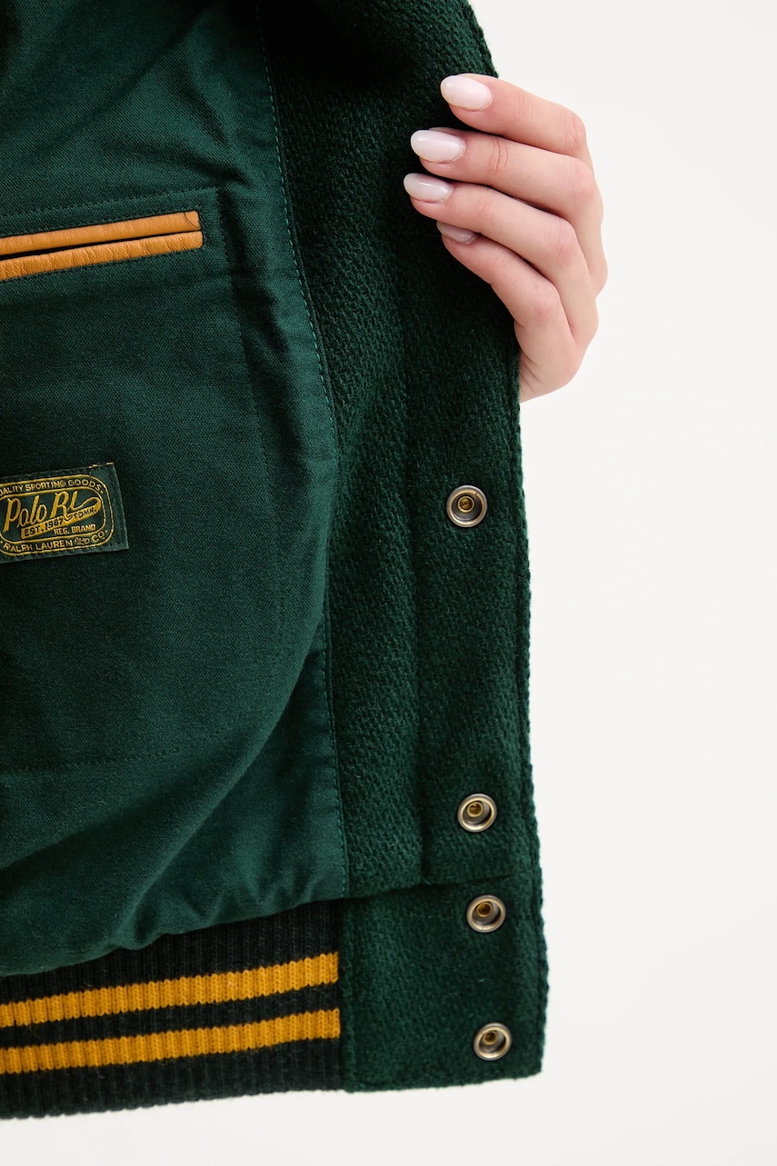 Polo Ralph Lauren kurtka z dodatkiem wełny kolor zielony przejściowa 211971014