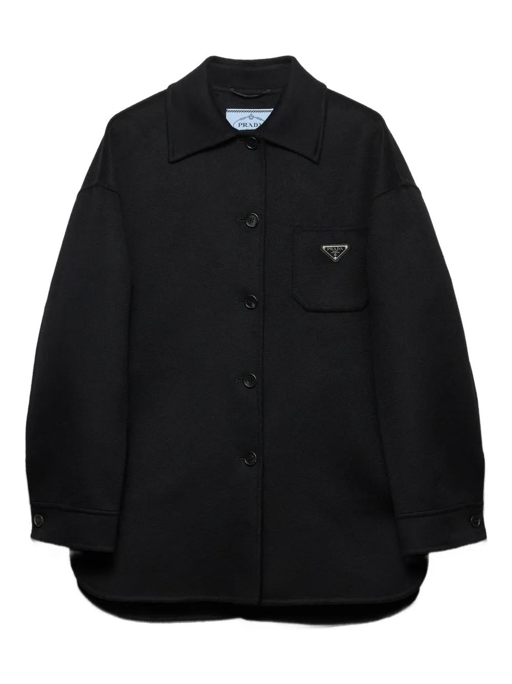 black shirt-style collar front button closure buttoned cuffs Triangle logo