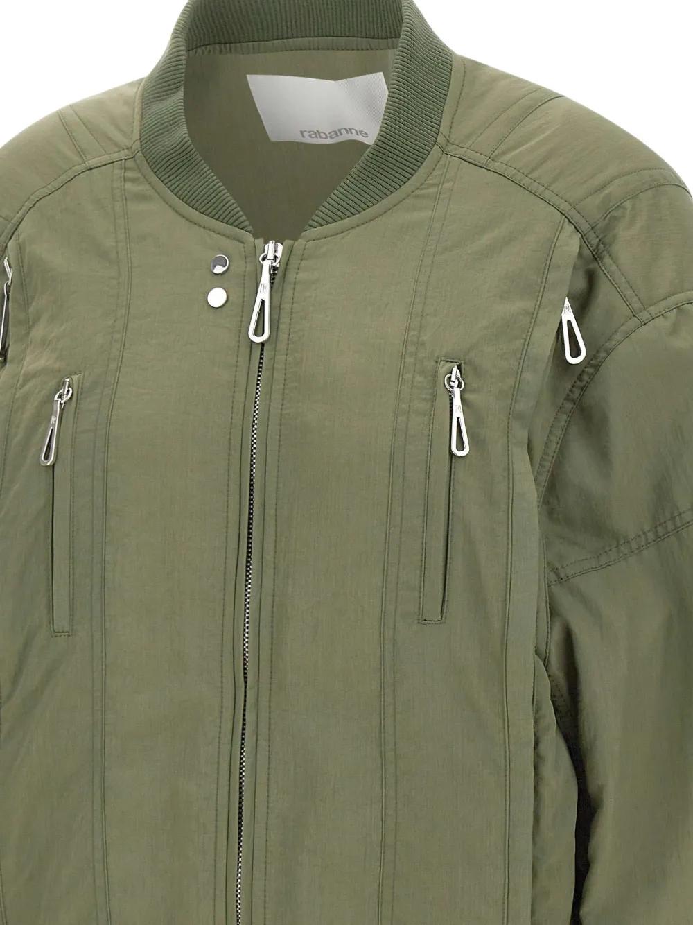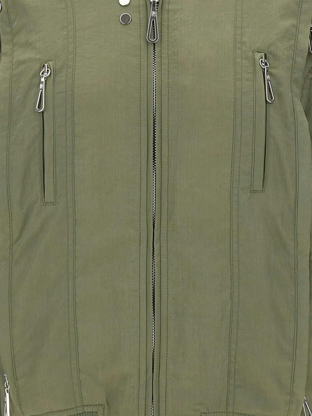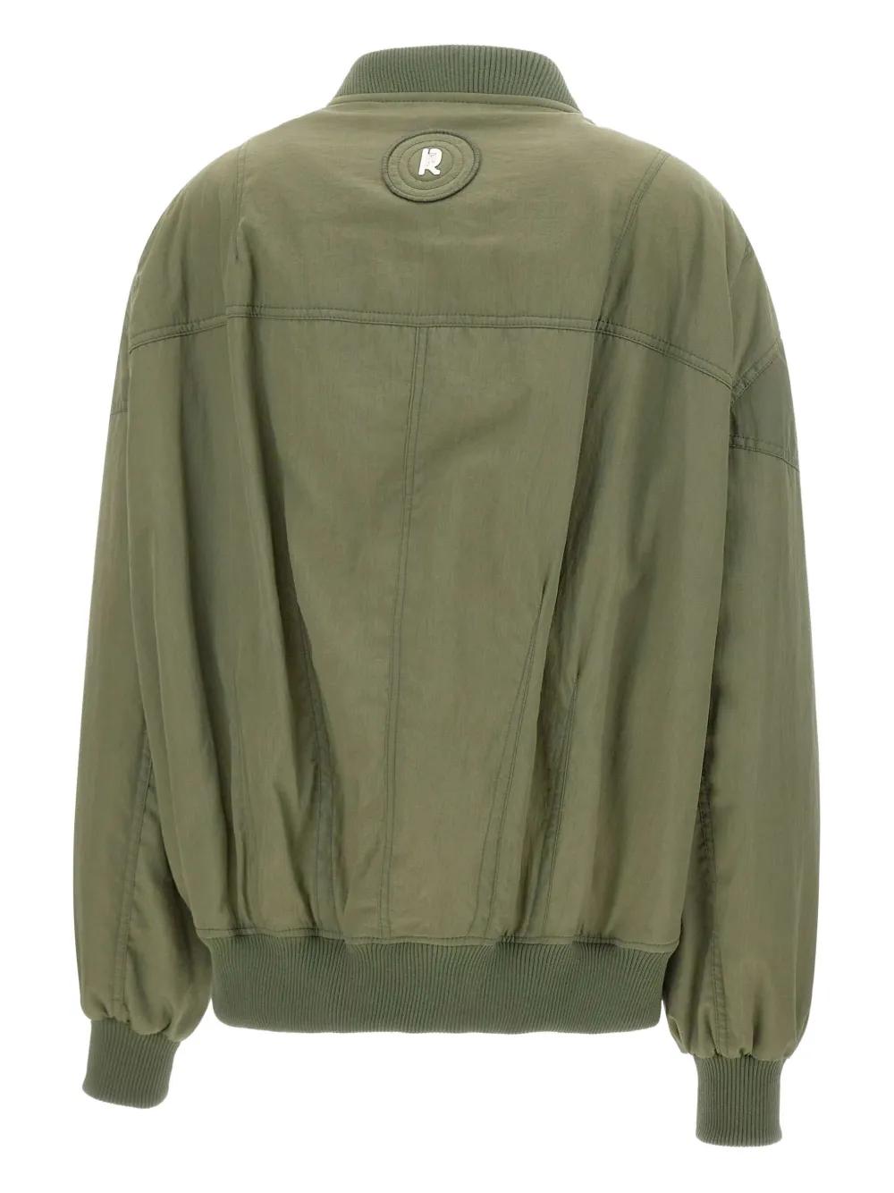 green zip closure zipped pockets ribbed hem and cuffs back logo patch