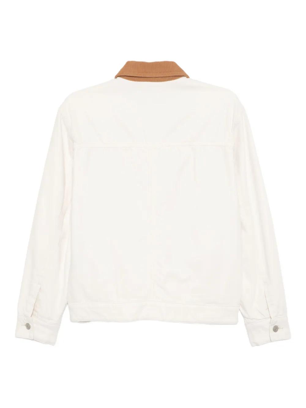 ivory white corduroy collar front zip fastening two side welt pockets buttoned cuffs