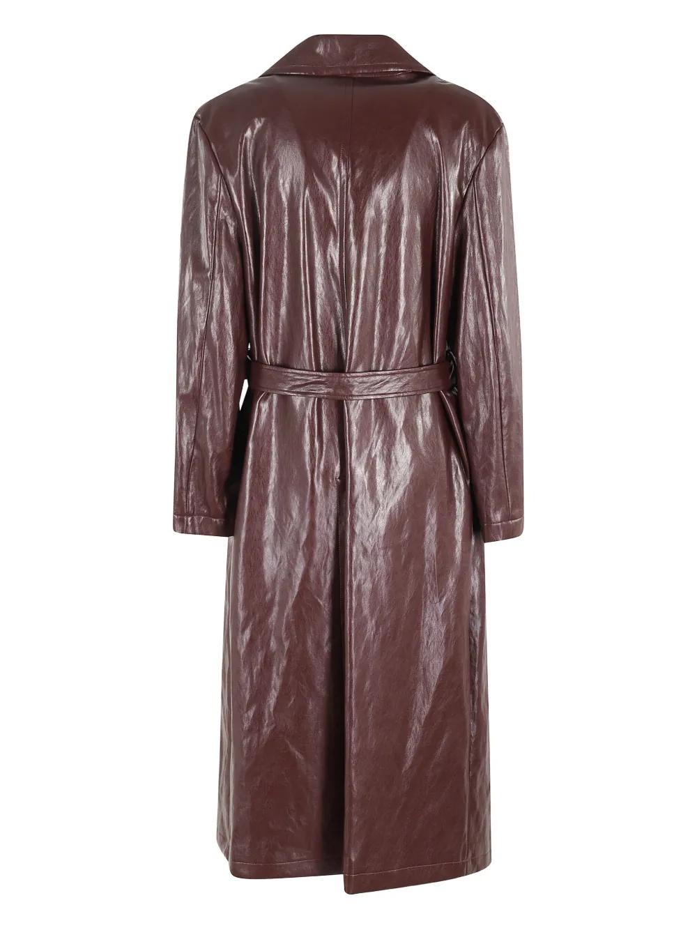brown belted button fastening lapel collar long sleeves buckle detail