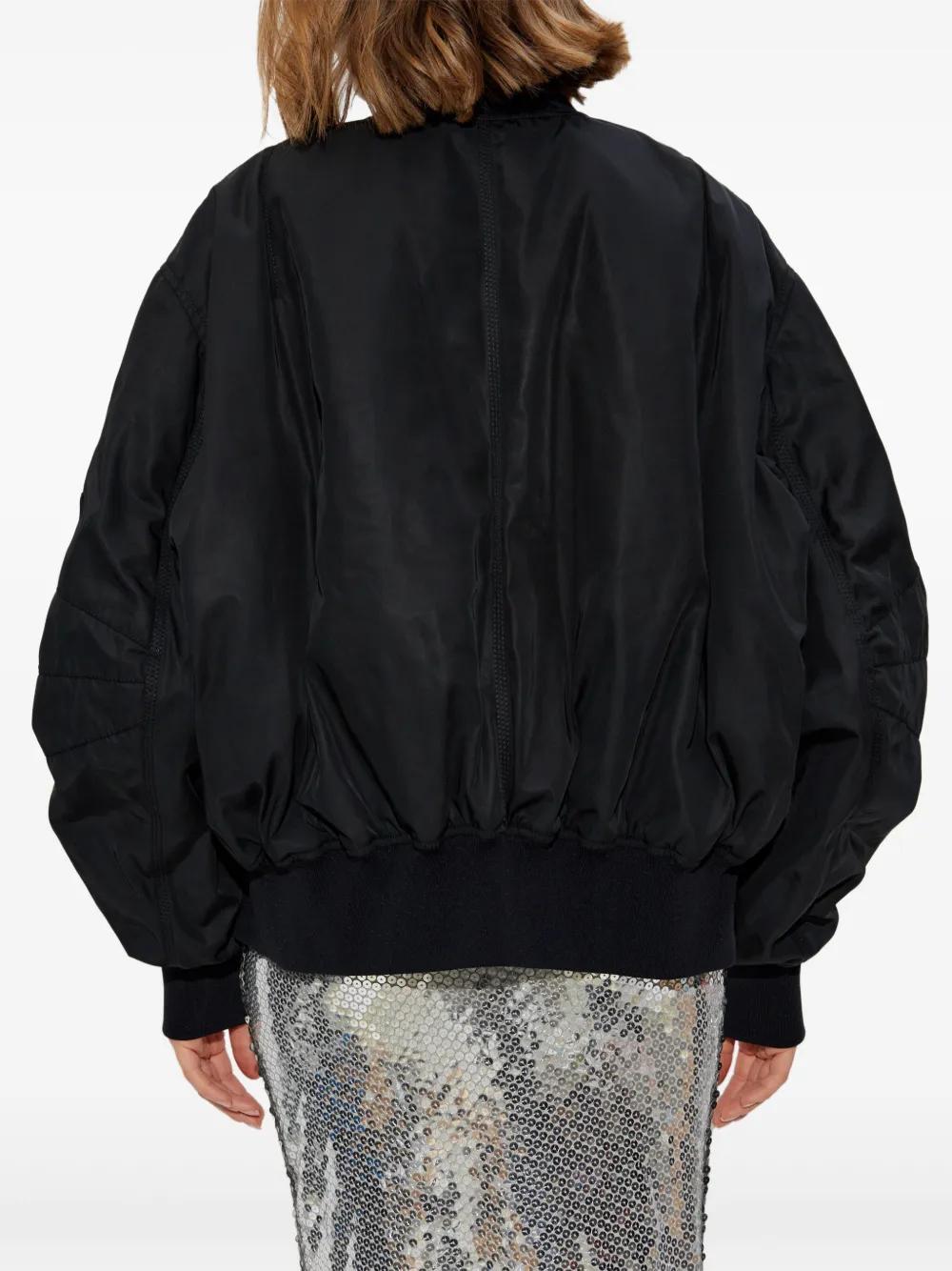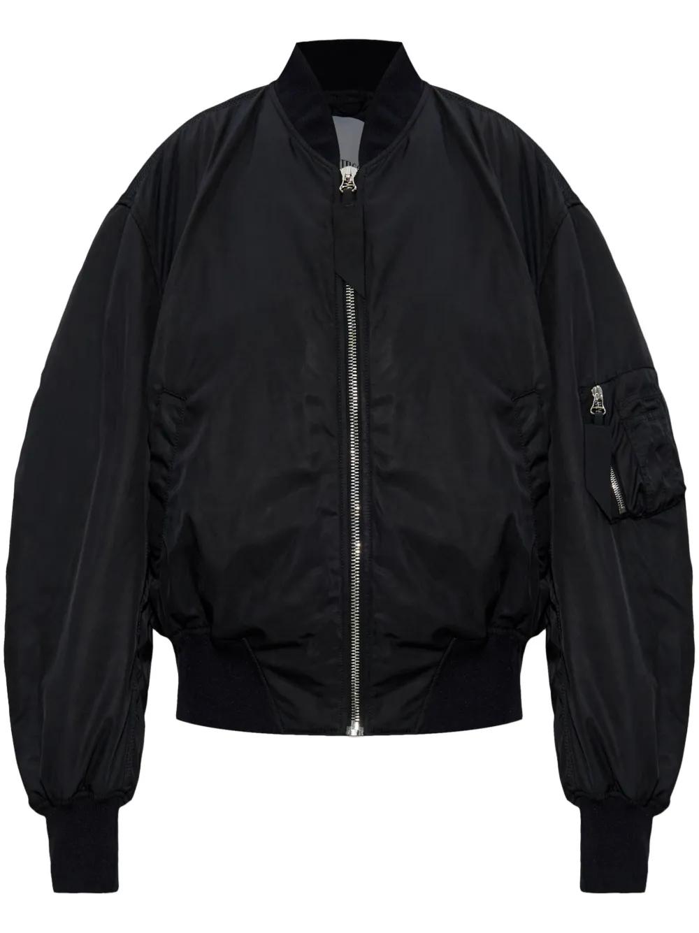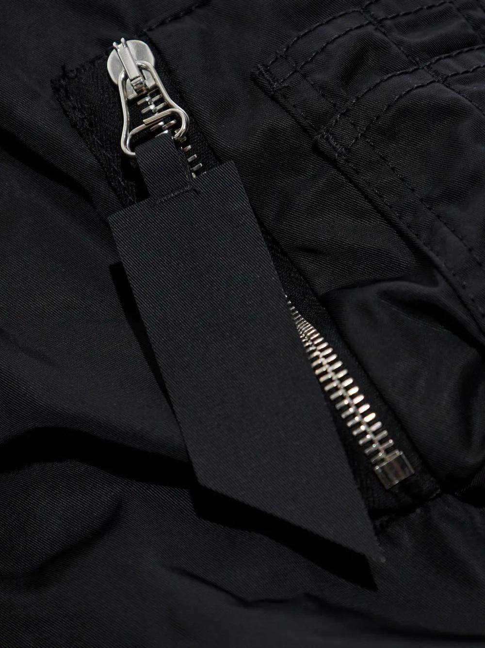 black front zip fastening sleeve zip pocket two side welt pockets drop shoulder