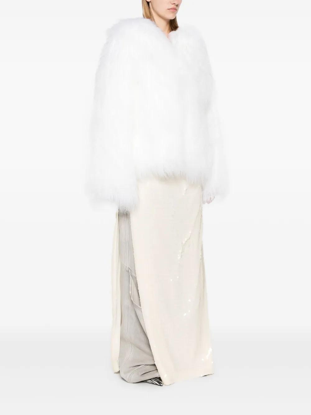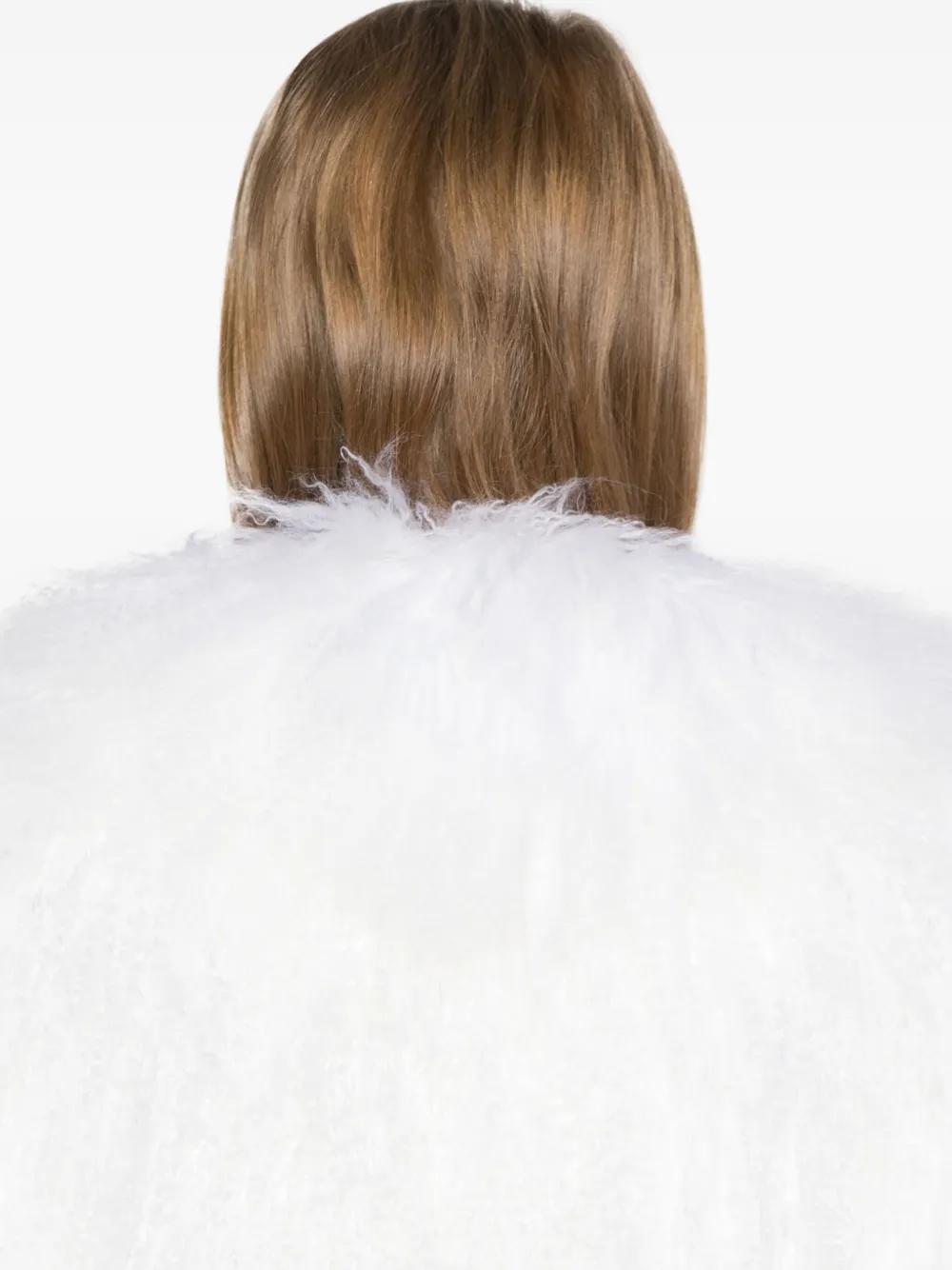 white shearling wide notch lapels concealed front button, hook and zip fastening long sleeves two side slit pockets straight hem logo-jacquard lining