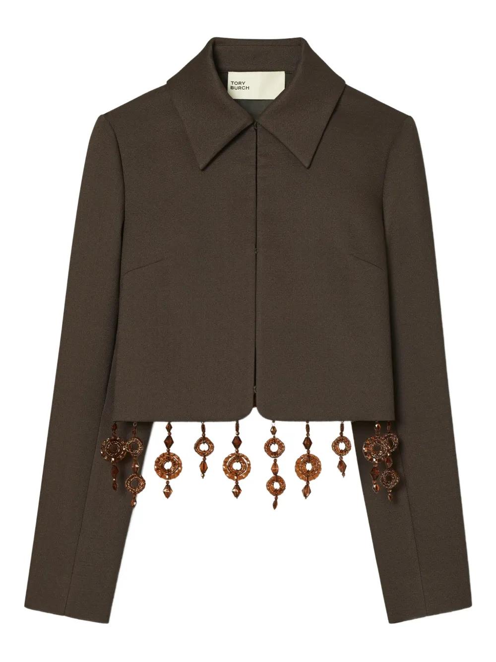 Tory Burch beaded crepe jacket - Brown