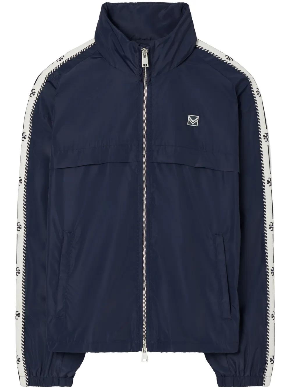 navy blue high neck logo plaque Double T logo knit tape trim front zip fastening long sleeves elasticated cuffs and hem two side zip-fastening pockets mesh lining straight hem