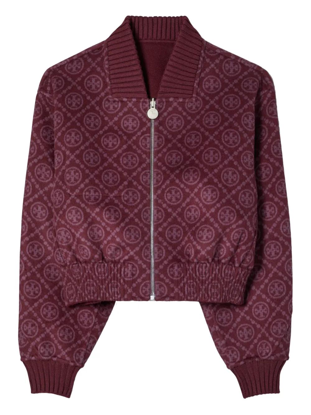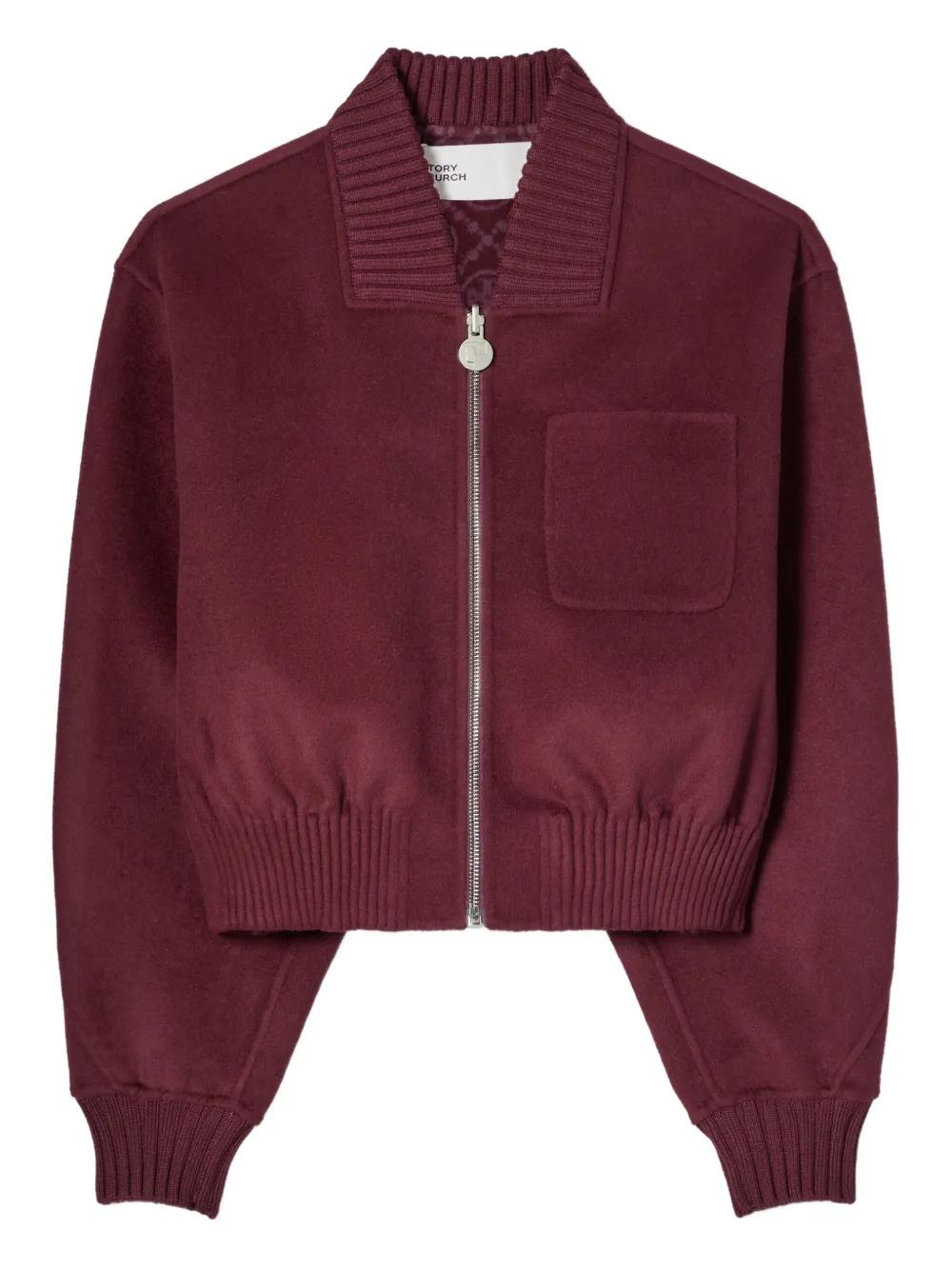 red wool zip fastening ribbed cuffs ribbed hem long sleeves patch pocket