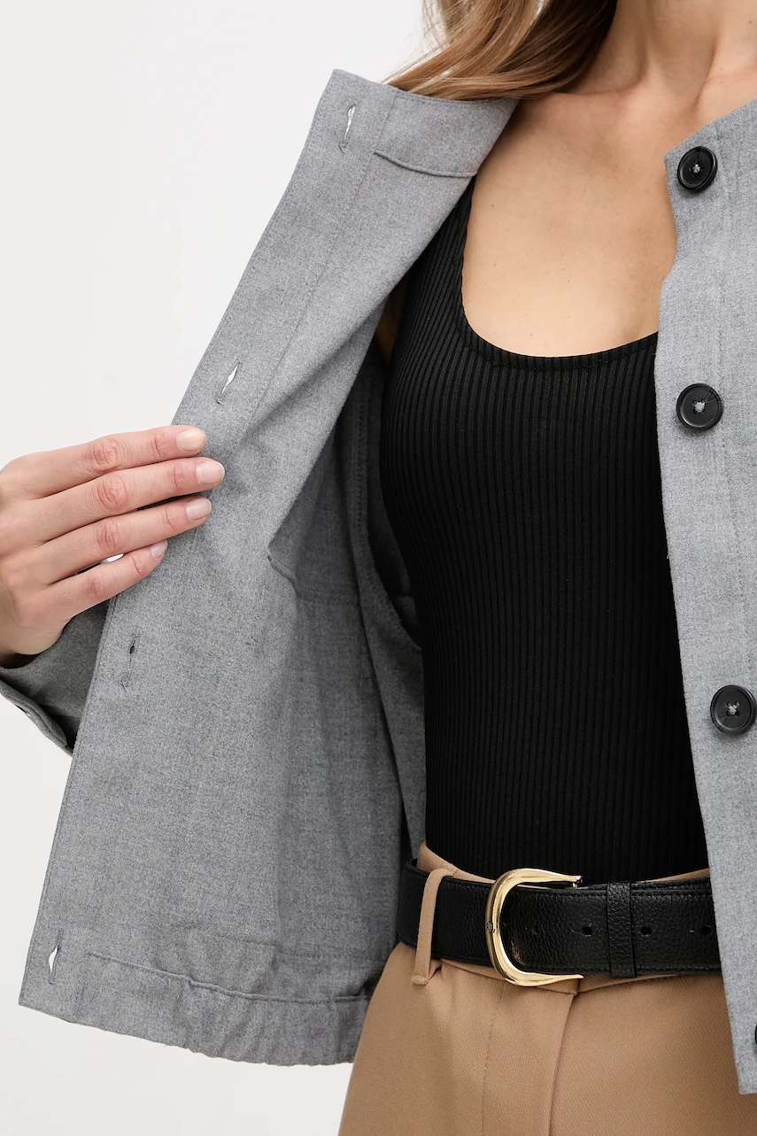- Prosty, nie blokujący ruchów fason. - Wygodne zapięcie na guziki ułatwia zakładanie i zdejmowanie. - Mankiety zapinane na guziki. - Z przodu dwie wsuwane kieszenie. - Dolna krawędź wykończona wygodnym, elastycznym ściągaczem. - Okrągły dekolt. - Długość rękawa: 51 cm. - Długość: 49 cm. - Szerokość pod pachami: 47 cm. - Wymiary podane dla rozmiaru: 34.