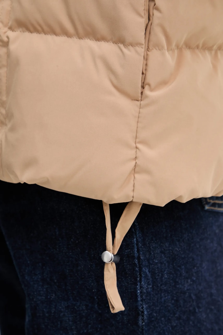 - Produkt posiada certyfikat ICEA - Instytut Certyfikacji Etyki i Audytu. Instytucja ta zjamuje się audytem i wydawaniem certyfikatów, które potwierdzają, że dany produkt spełnia określone standardy ekologiczne. - Recycled Blended Claim Standard (RBCS) to standard certyfikacyjny, który dotyczy produktów zawierających materiały pochodzące z recyklingu. Zapewnia wiarygodność informacji o udziale recyklingowanych materiałów w danym produkcie. Standard ten weryfikuje pochodzenie materiałów z recyklingu oraz kontroluje łańcuch dostaw. - Luźny krój zapewniający pełną swobodę ruchów. - Wypełnienie z puchu i pierza w proporcji 80/20. - Podwyższony kołnierz gwarantuje dodatkową ochronę przed chłodem. - Wbudowany kaptur zapewnia dodatkowe ciepło i osłonę, gdy jest to potrzebne. - Krój rękawa z obniżoną linią ramion nie ogranicza mobilności. - Rękawy wykończone elastyczną lamówką, dzięki której ubranie lepiej przylega do ciała i wygodnie się zakłada. - Dolna krawędź wykończona troczkami ze stoperami, które dzięki możliwości regulacji obwodu dołu, zwiększają izolację od zimna. - Zapięcie na całej długości na suwak wyposażony w wewnętrzną klapkę przeciwsztormową. - Dwie wsuwane kieszenie boczne. - Wnętrze kieszeni wyściełane polarem, który zwiększa ochronę przed zimnem. - Długość rękawa(mierzona od kaptura): 74 cm. - Długość: 63 cm. - Szerokość pod pachami: 60 cm. - Wymiary podane dla rozmiaru: S.
