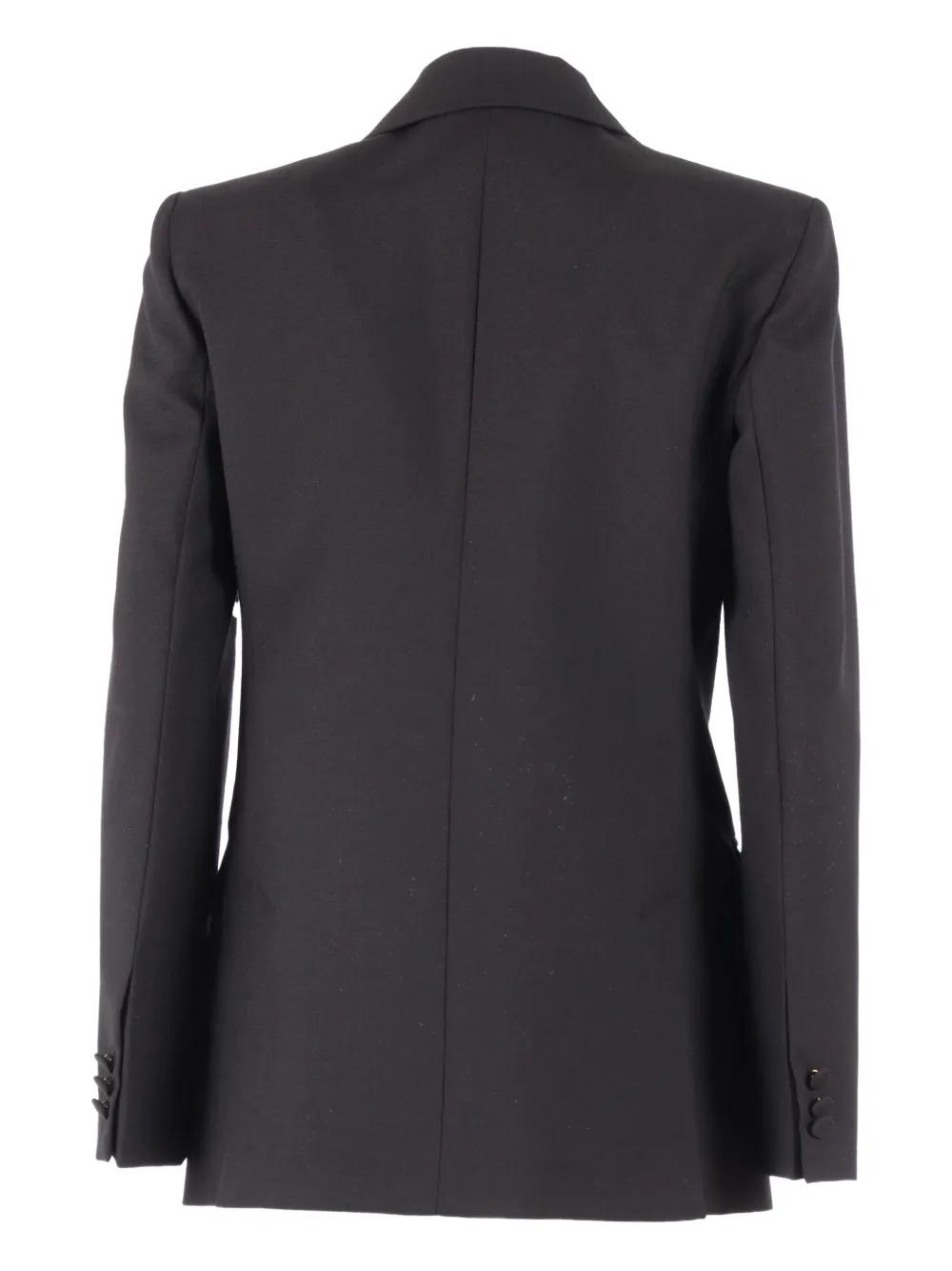 black double-breasted peak lapels front flap pockets button fastening long sleeves