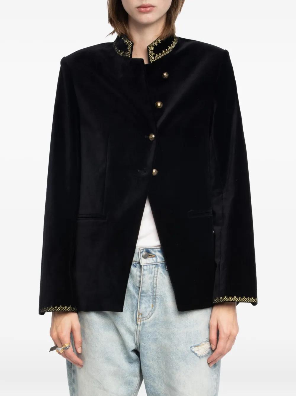 Zadig&Voltaire velvet-effect embellished-collar jacket - Black
