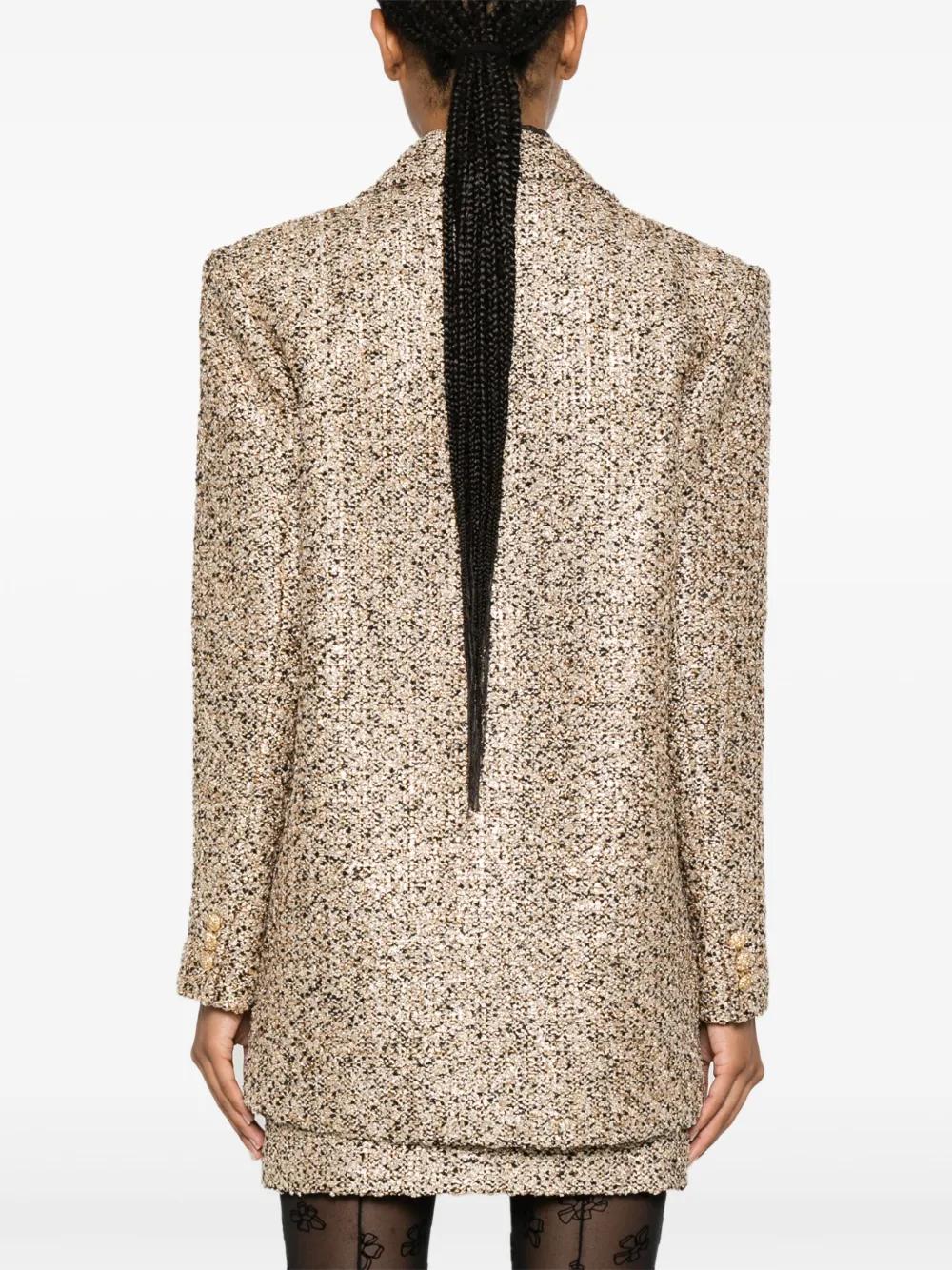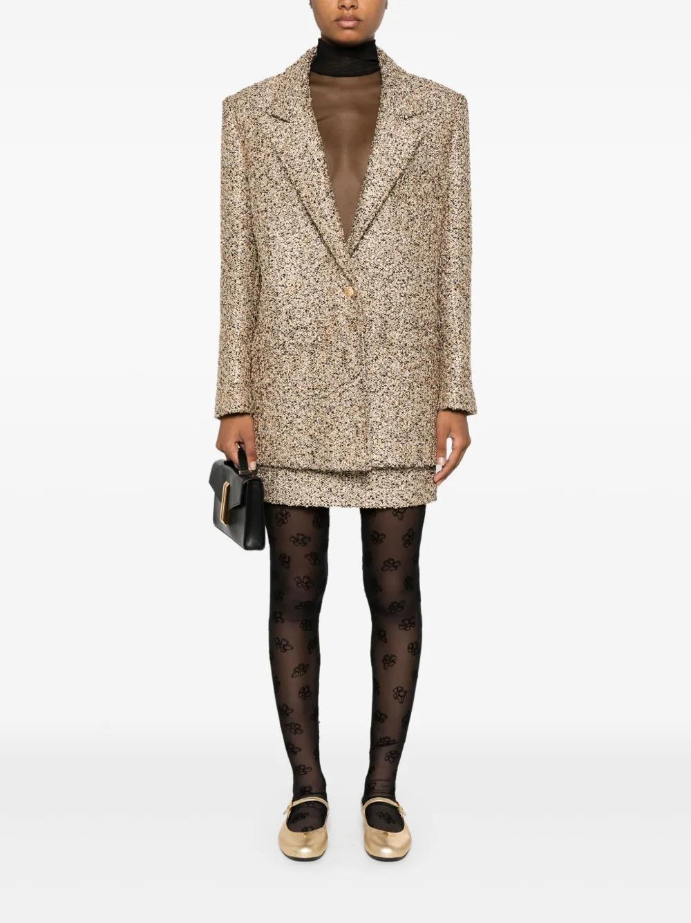 gold-tone tweed lurex detailing metallic effect front button fastening notched lapels shoulder pads long sleeves faux pocket detail full lining straight hem