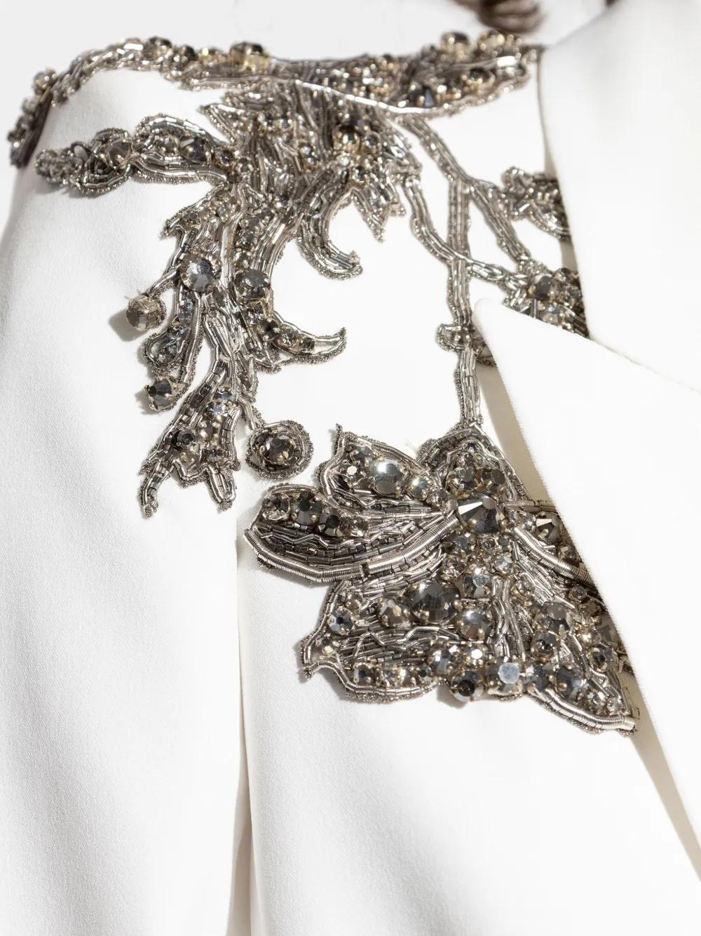 off-white crystal embellishment acetate silk mix single-button fastening structured shoulders fitted silhouette