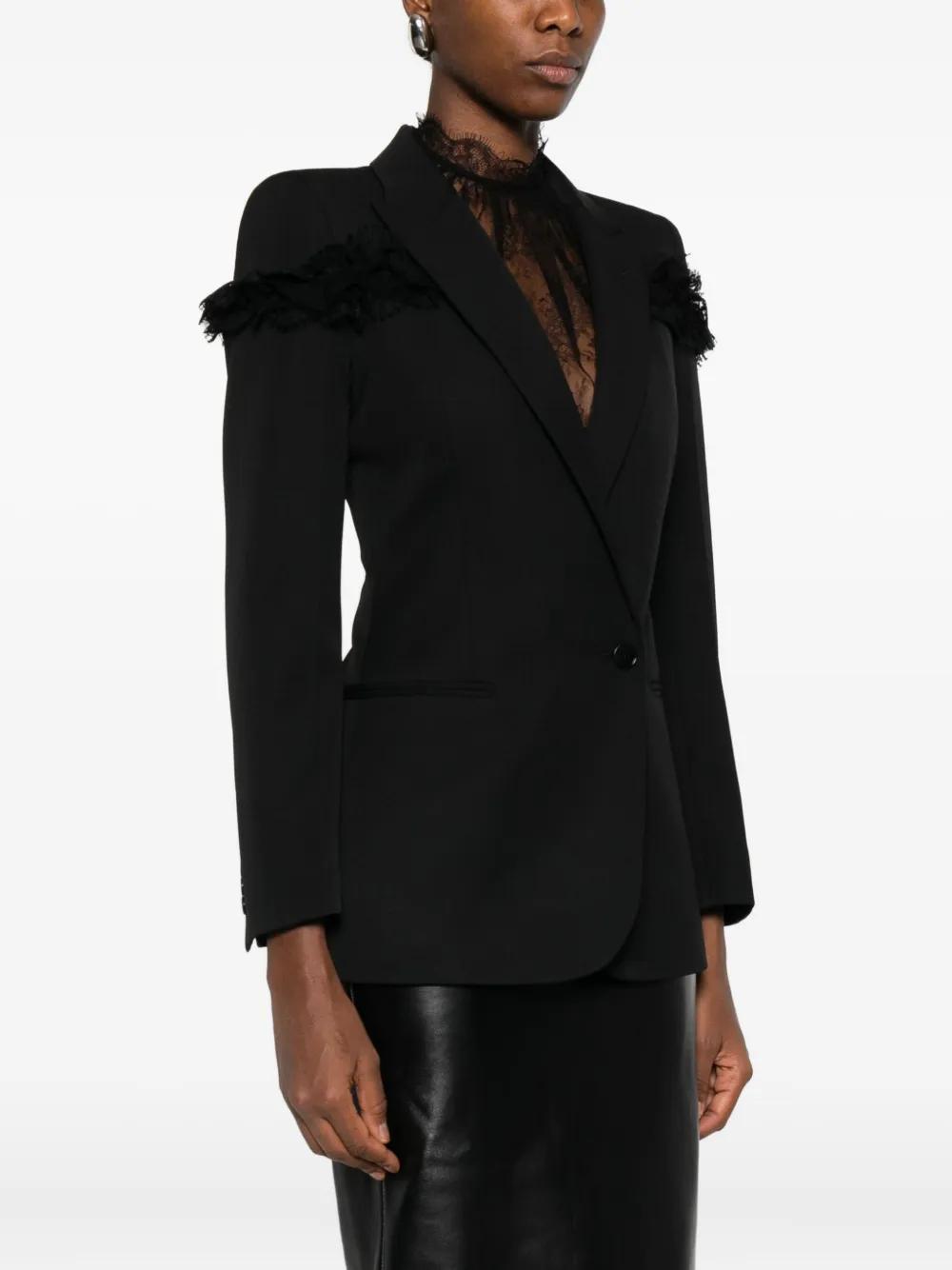 Alexander McQueen fringed-detail single-breasted blazer - Black