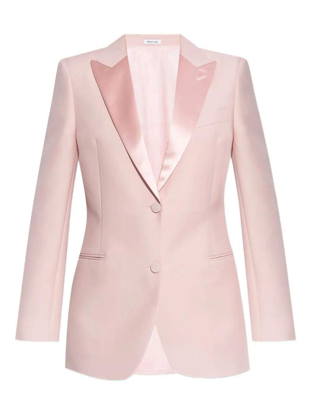 pink satin lapel two-button fastening long sleeves straight hem structured shoulders