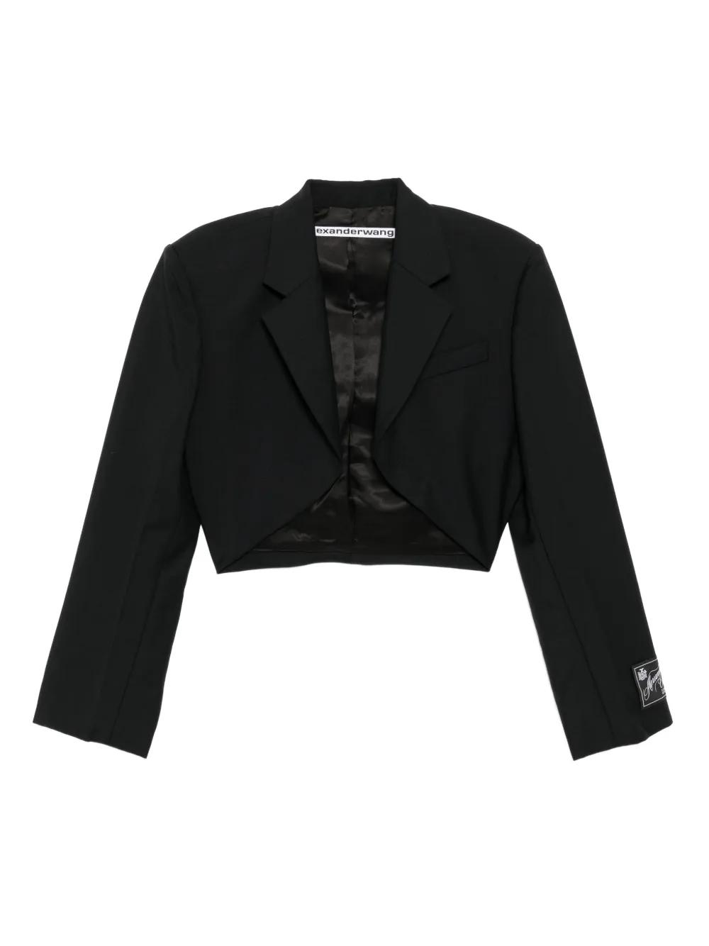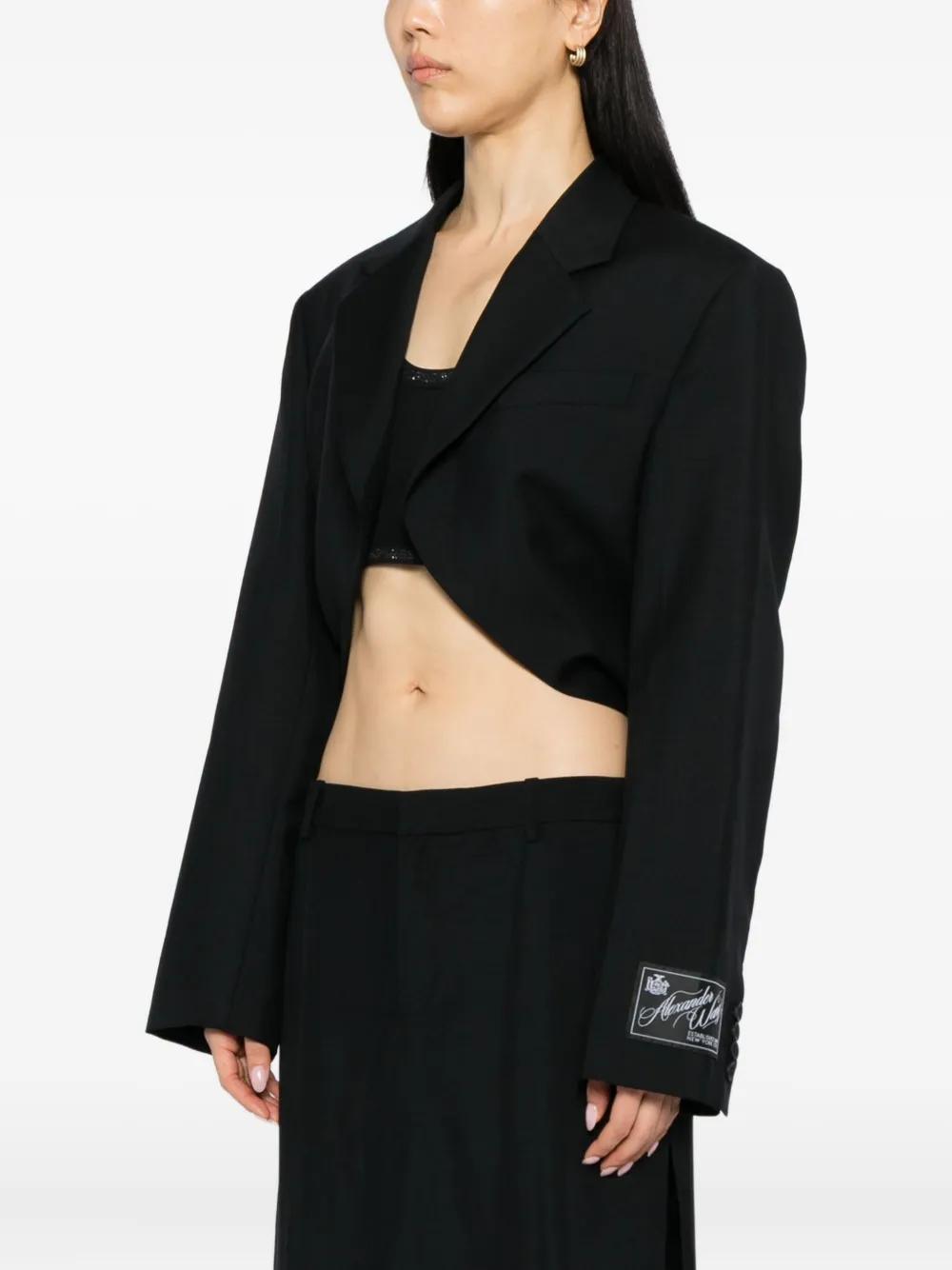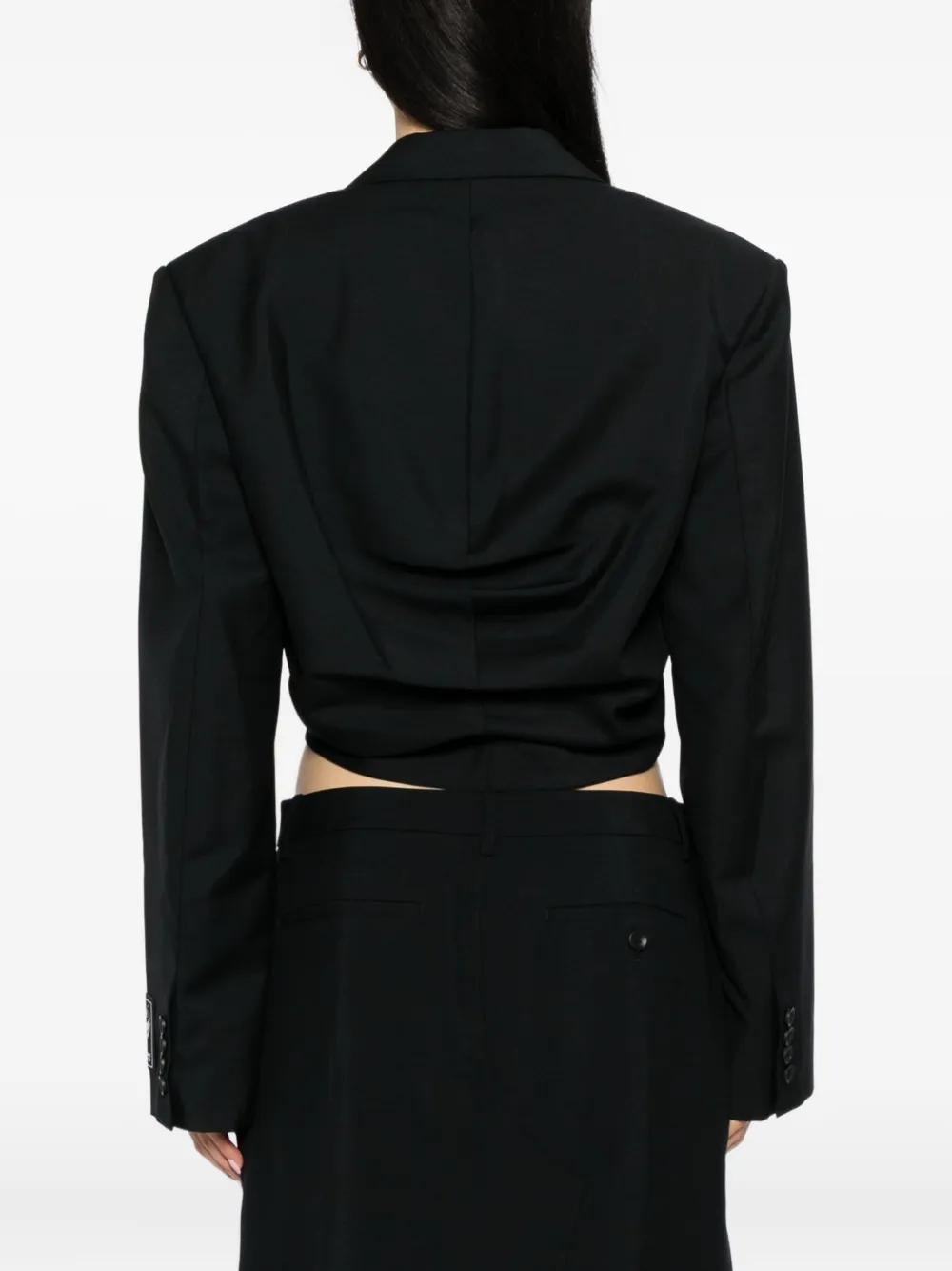black chest welt pocket open front buttoned-cuff sleeves draped detailing