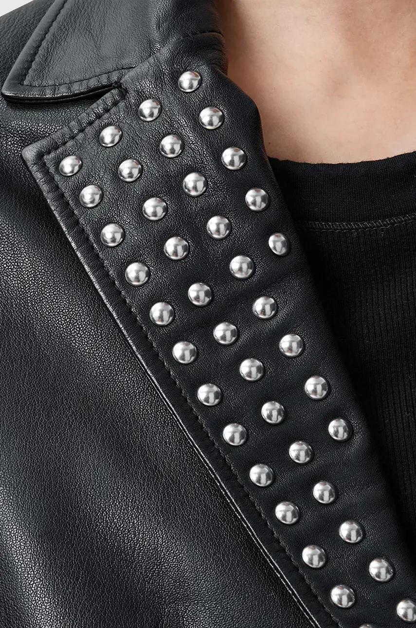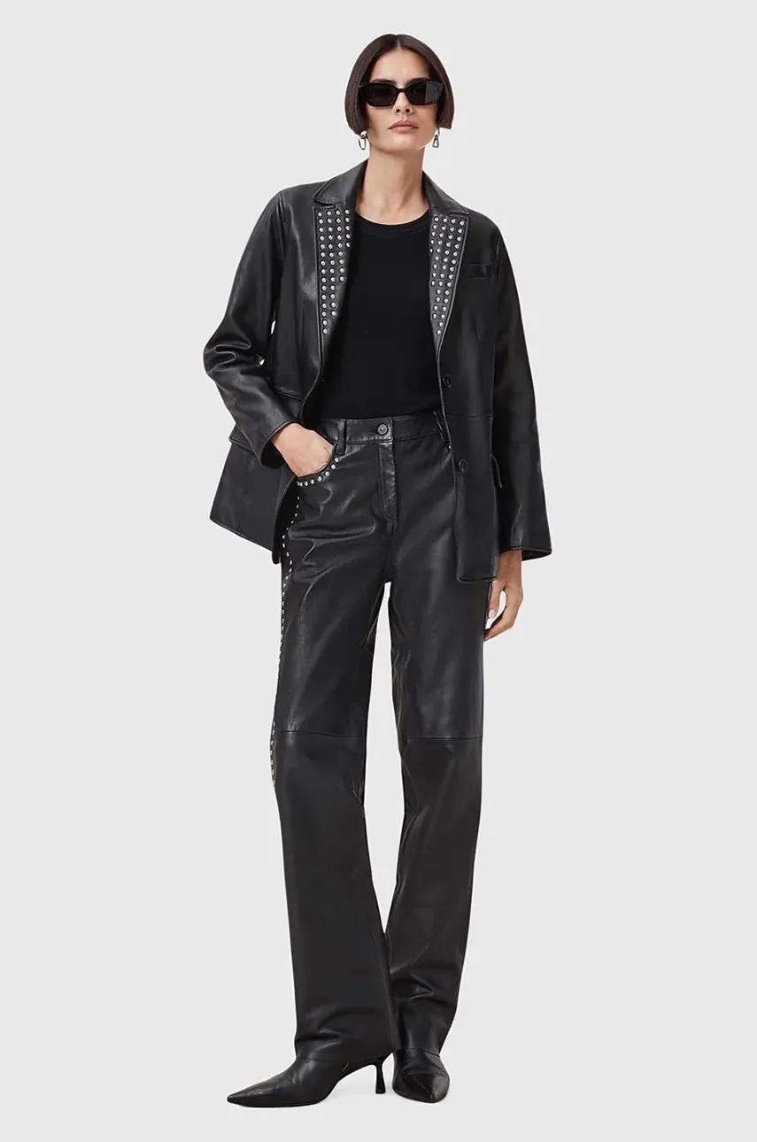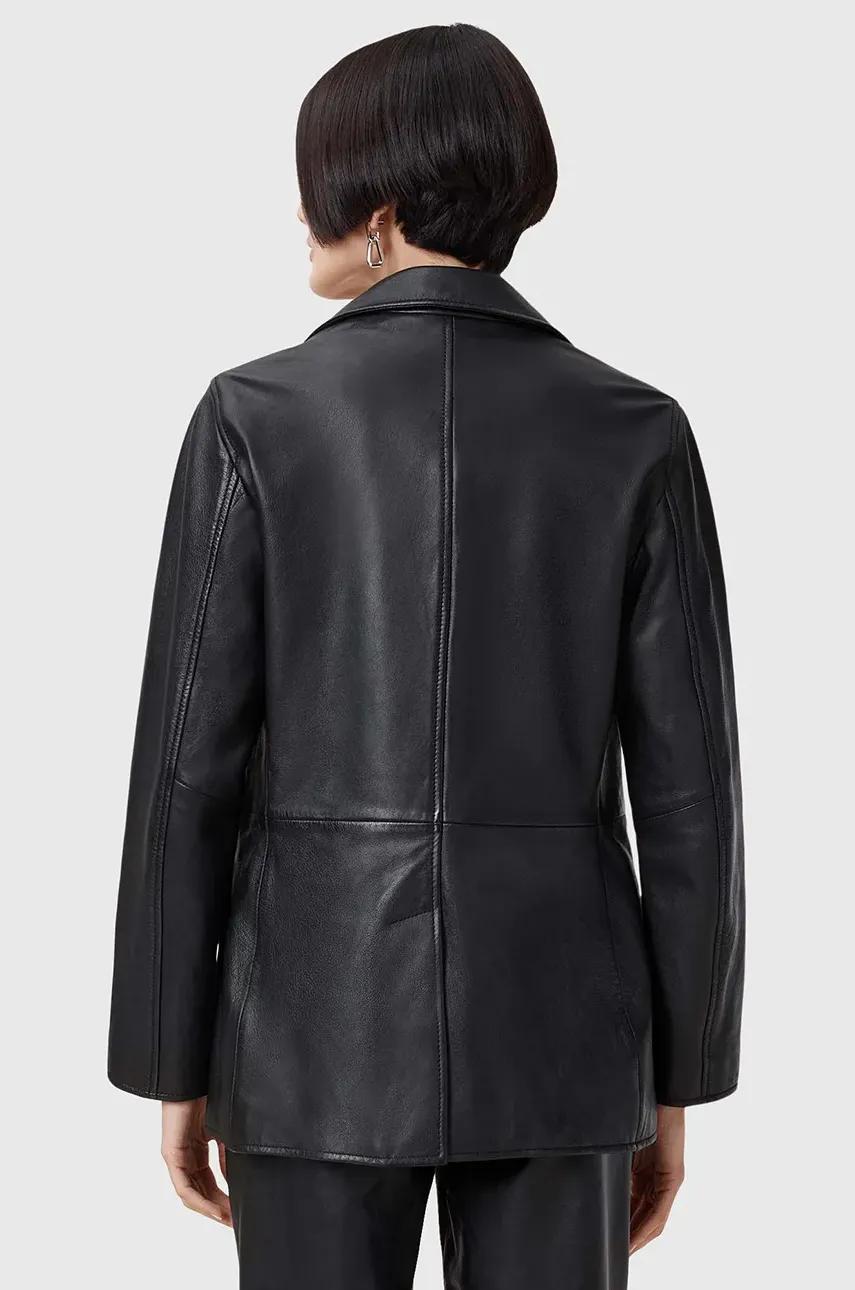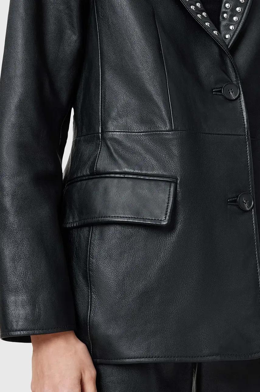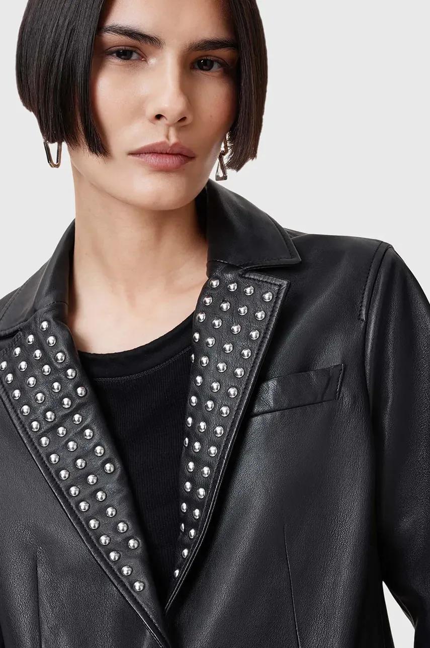 AllSaints marynarka skórzana CORINNA kolor czarny jednorzędowa W037LC