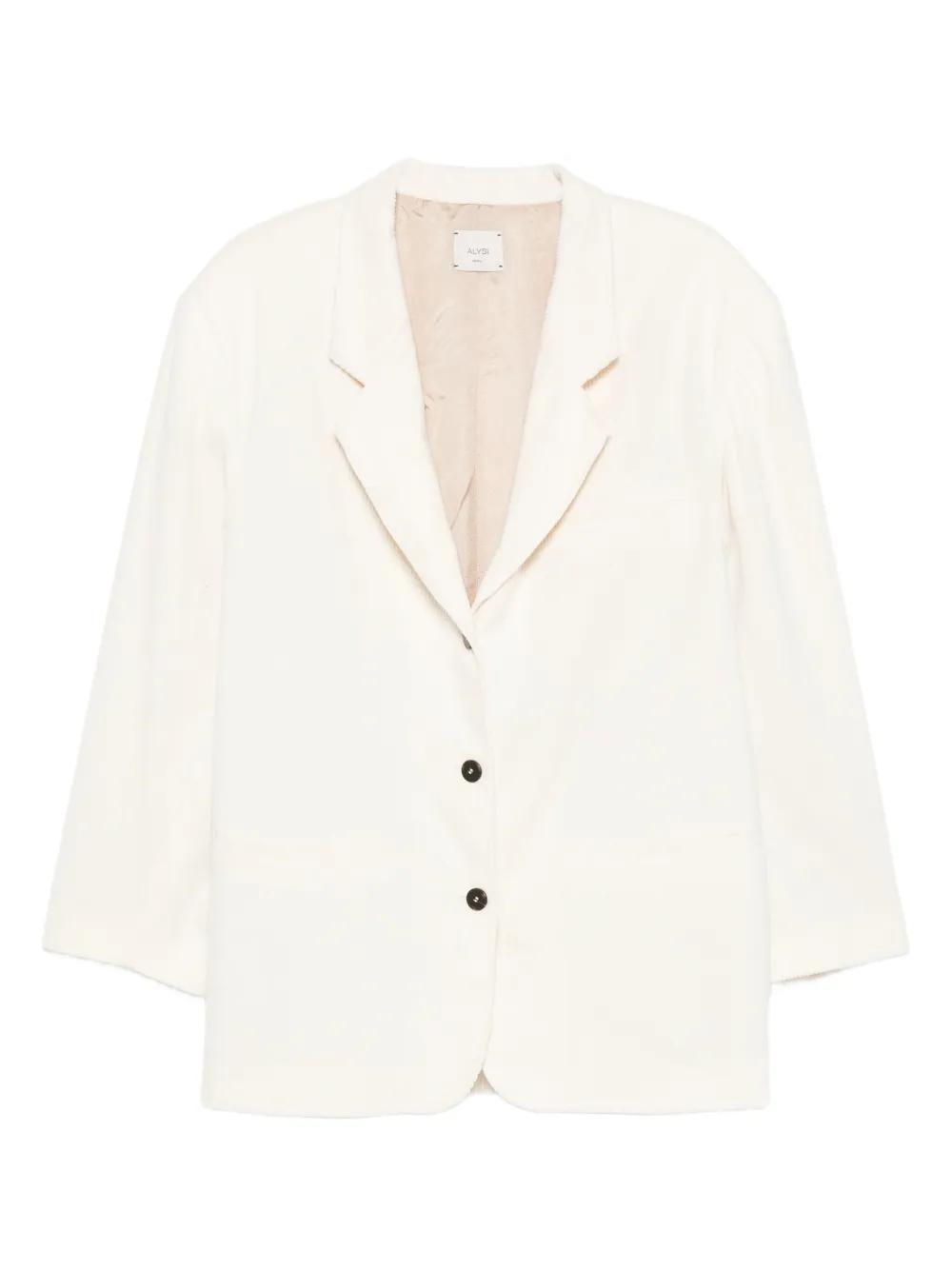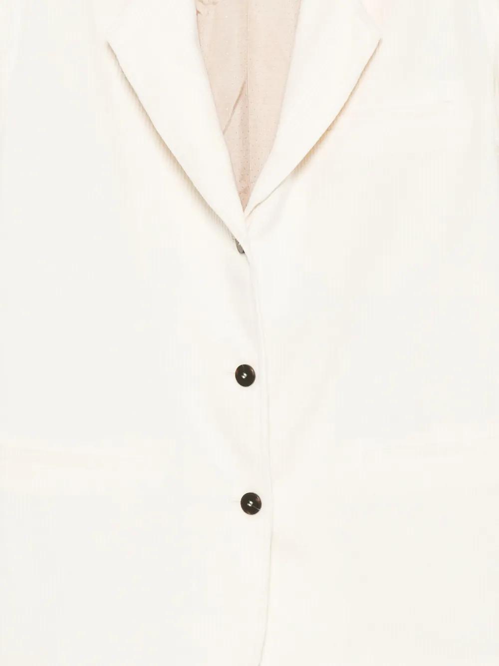 off-white corduroy texture notched lapel three-button fastening long sleeves buttoned cuffs