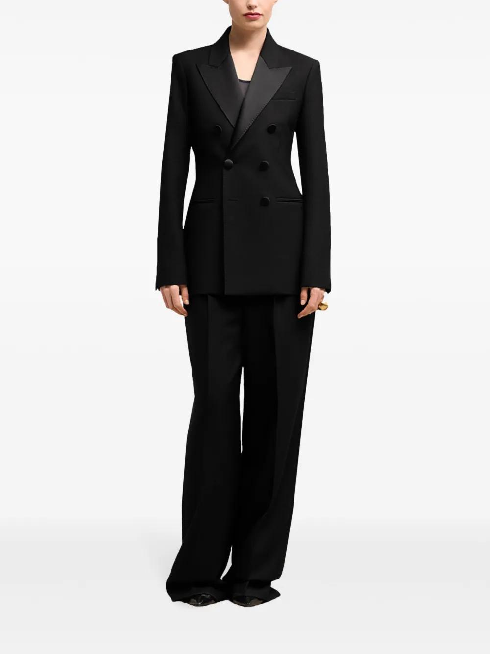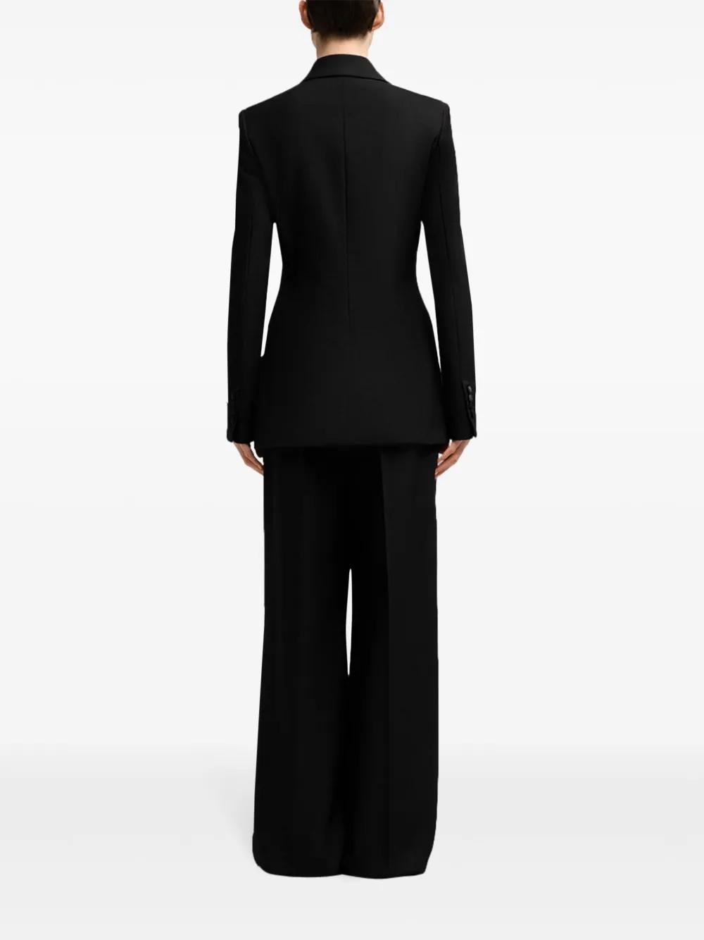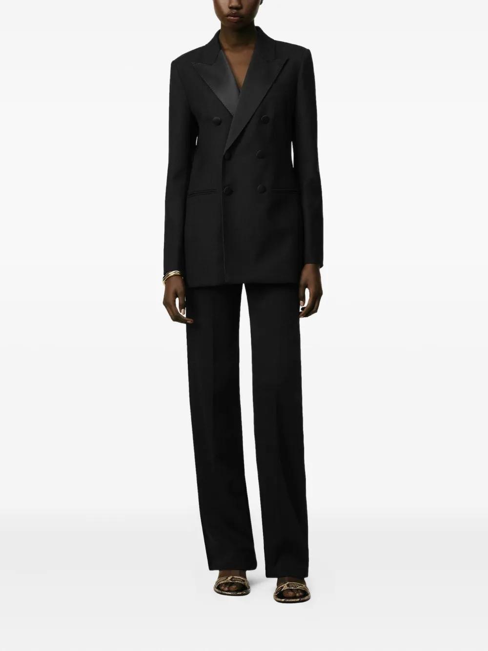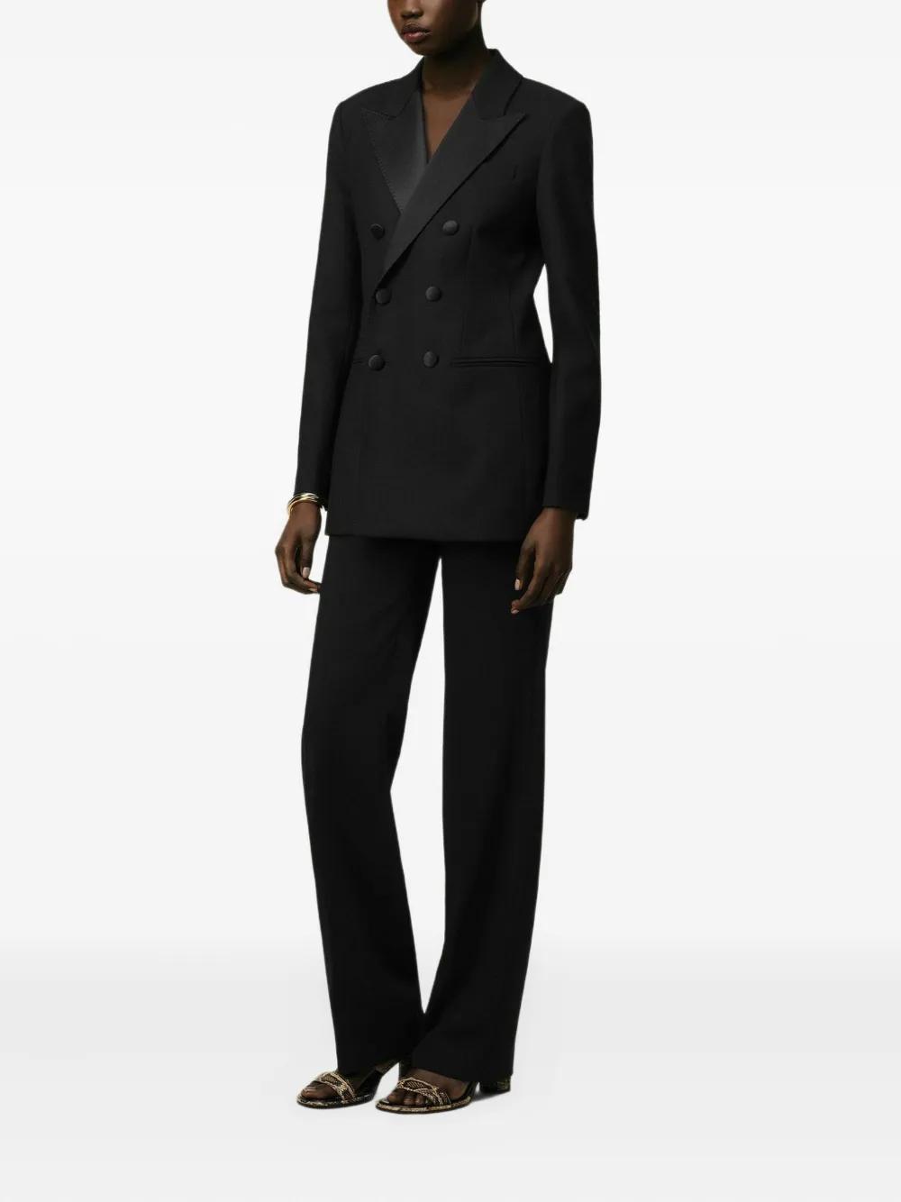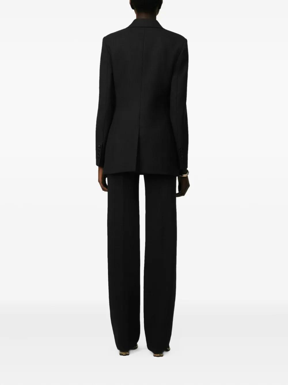 black wool V-neck double-breasted button fastening two side slit pockets long sleeves straight hem
