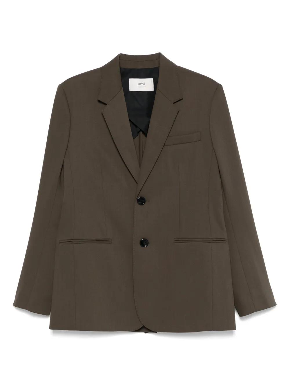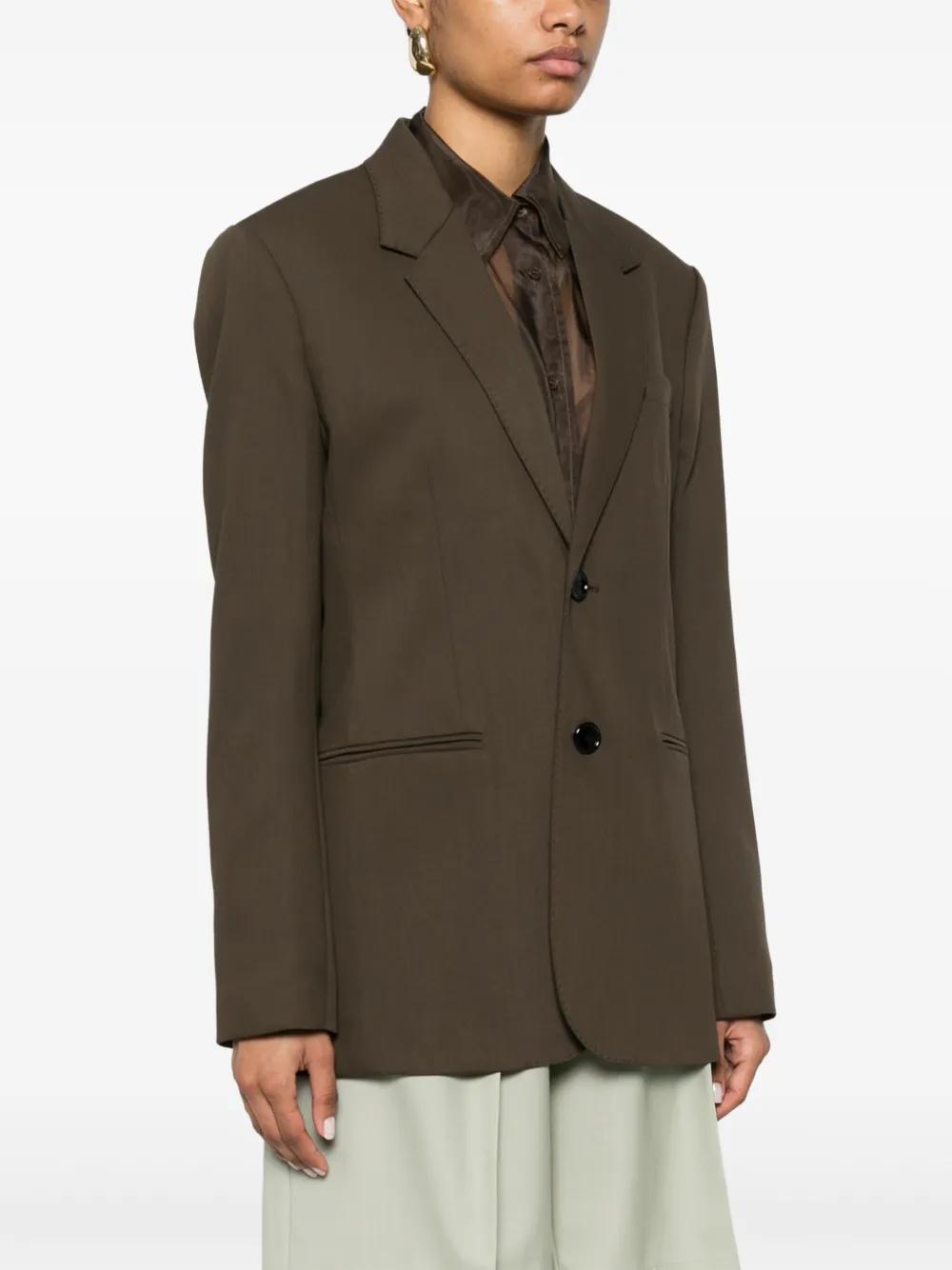 khaki front button fastening buttoned cuffs American rear vent shoulder pads