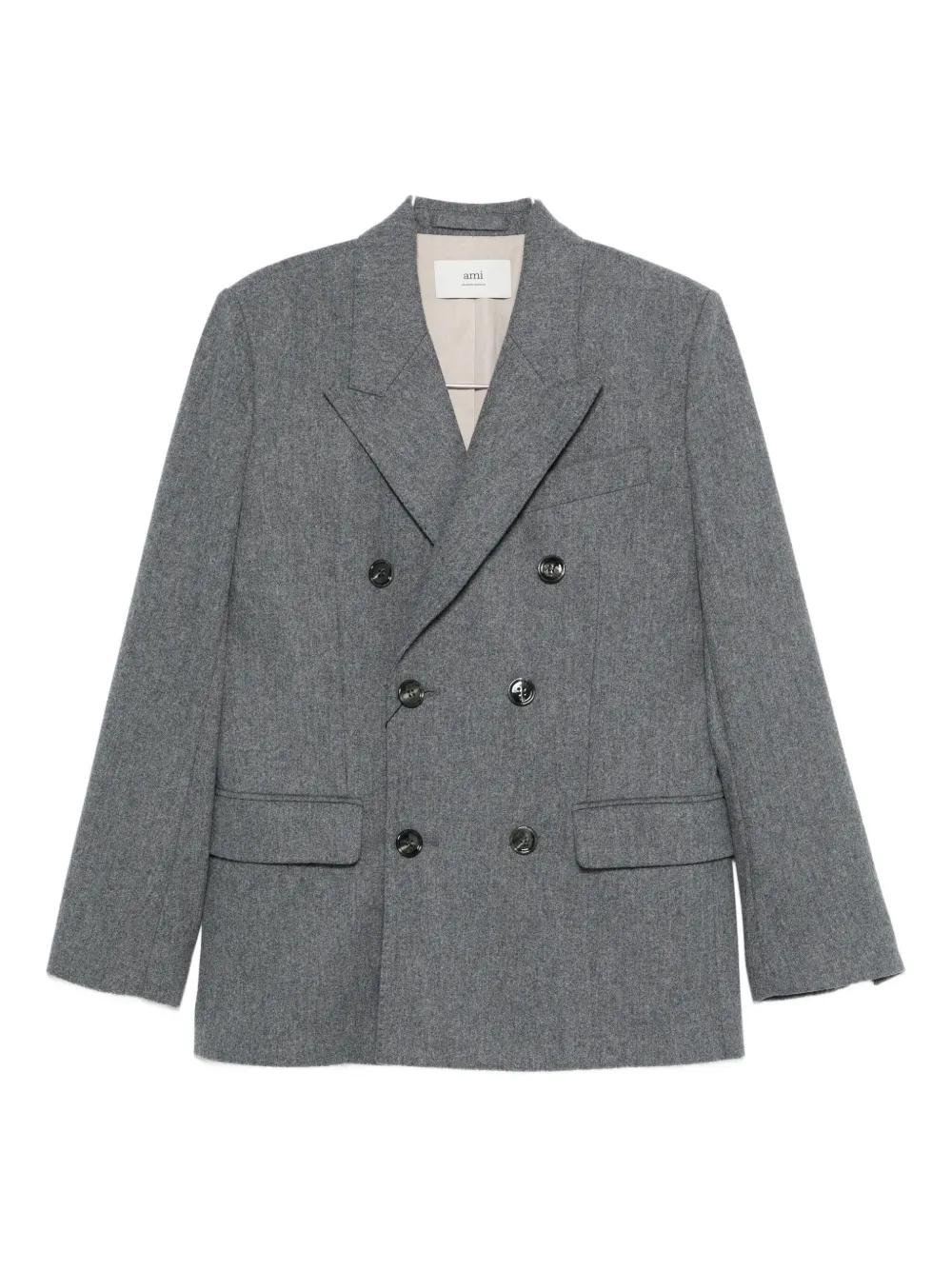 black double-breasted peak lapels front flap pockets gold-tone buttons long sleeves