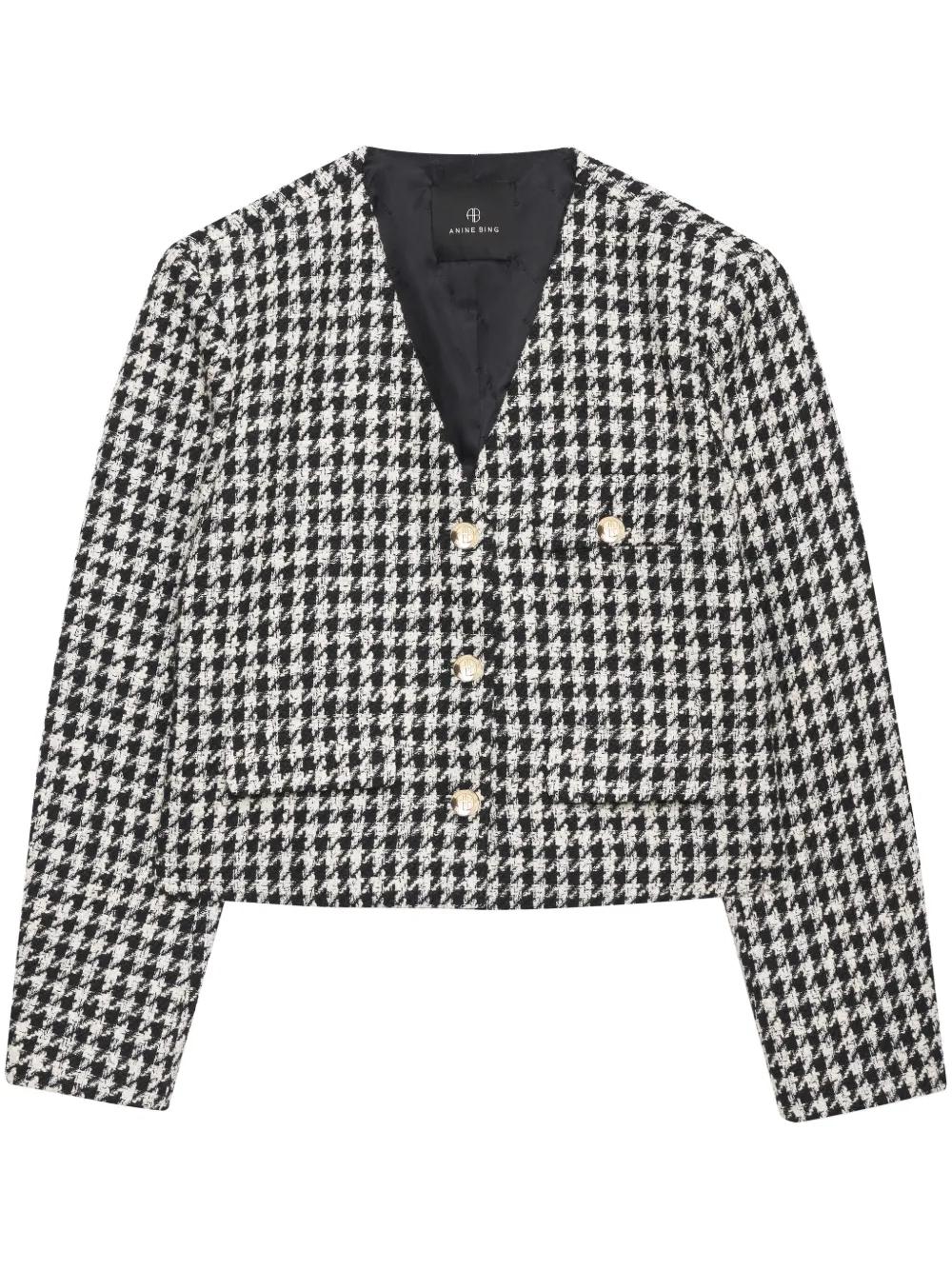 ANINE BING Cara houndstooth-pattern blazer - Black