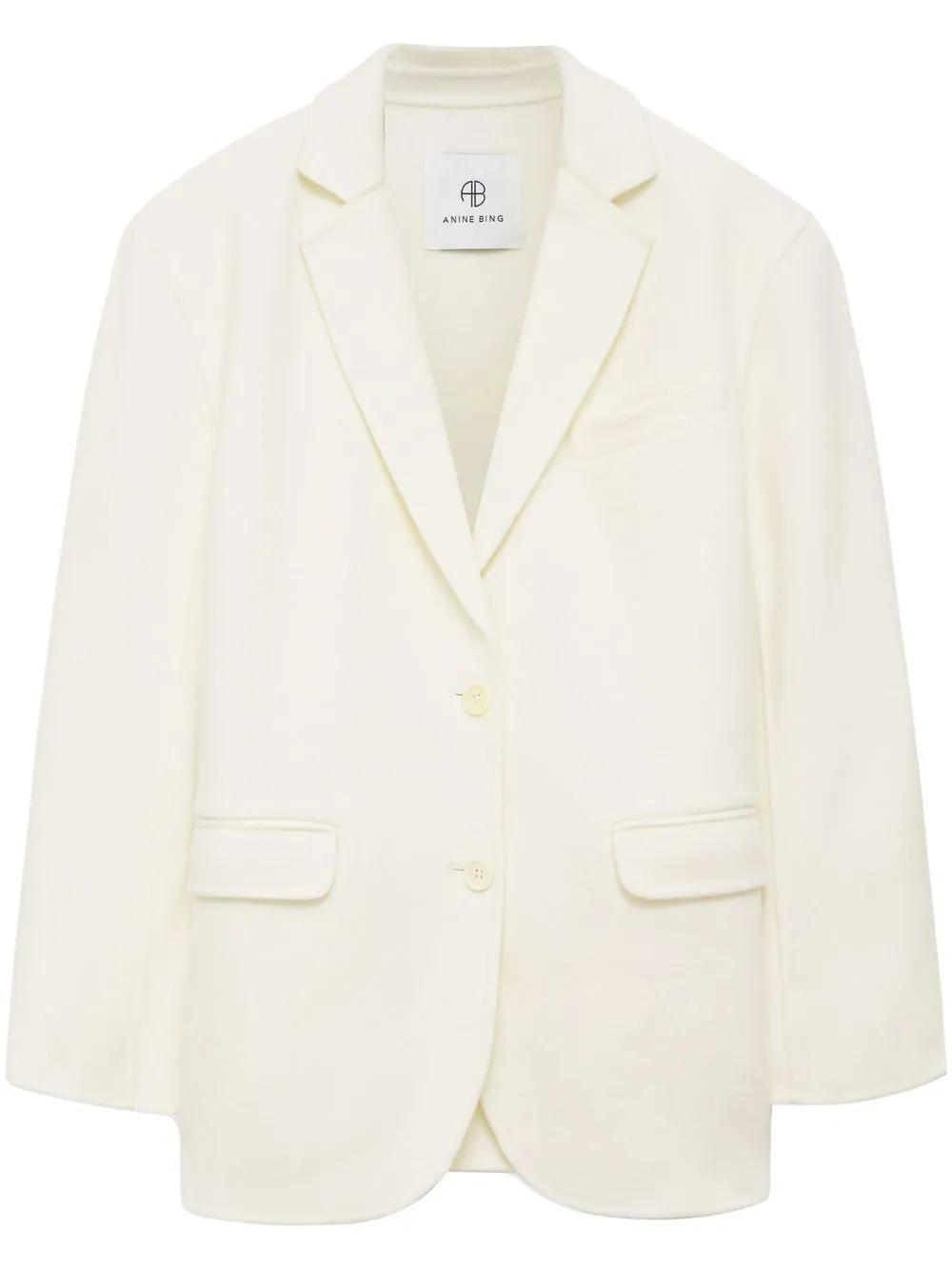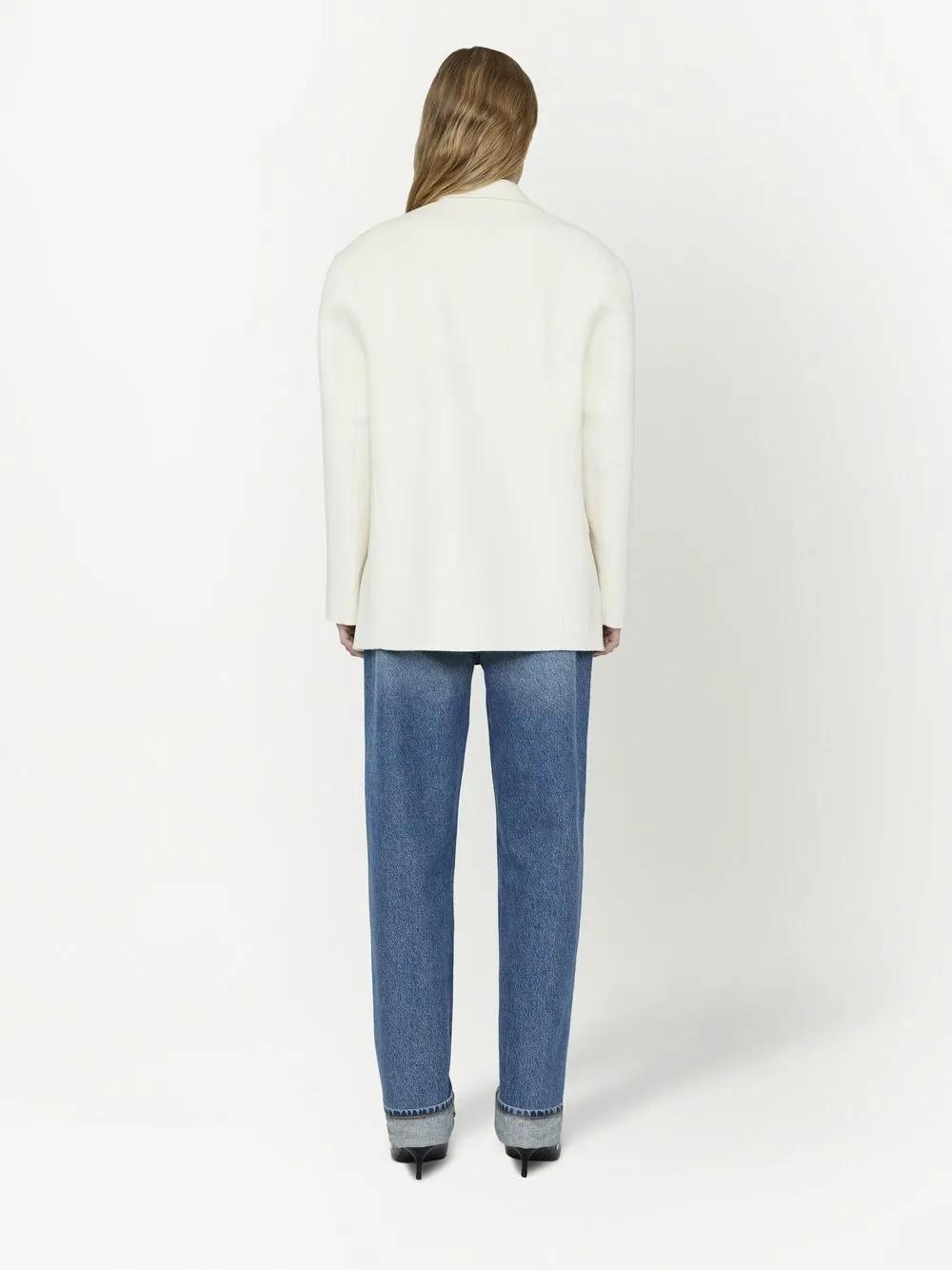white wool-cashmere blend notched lapels chest welt pocket two front flap pockets long sleeves straight hem