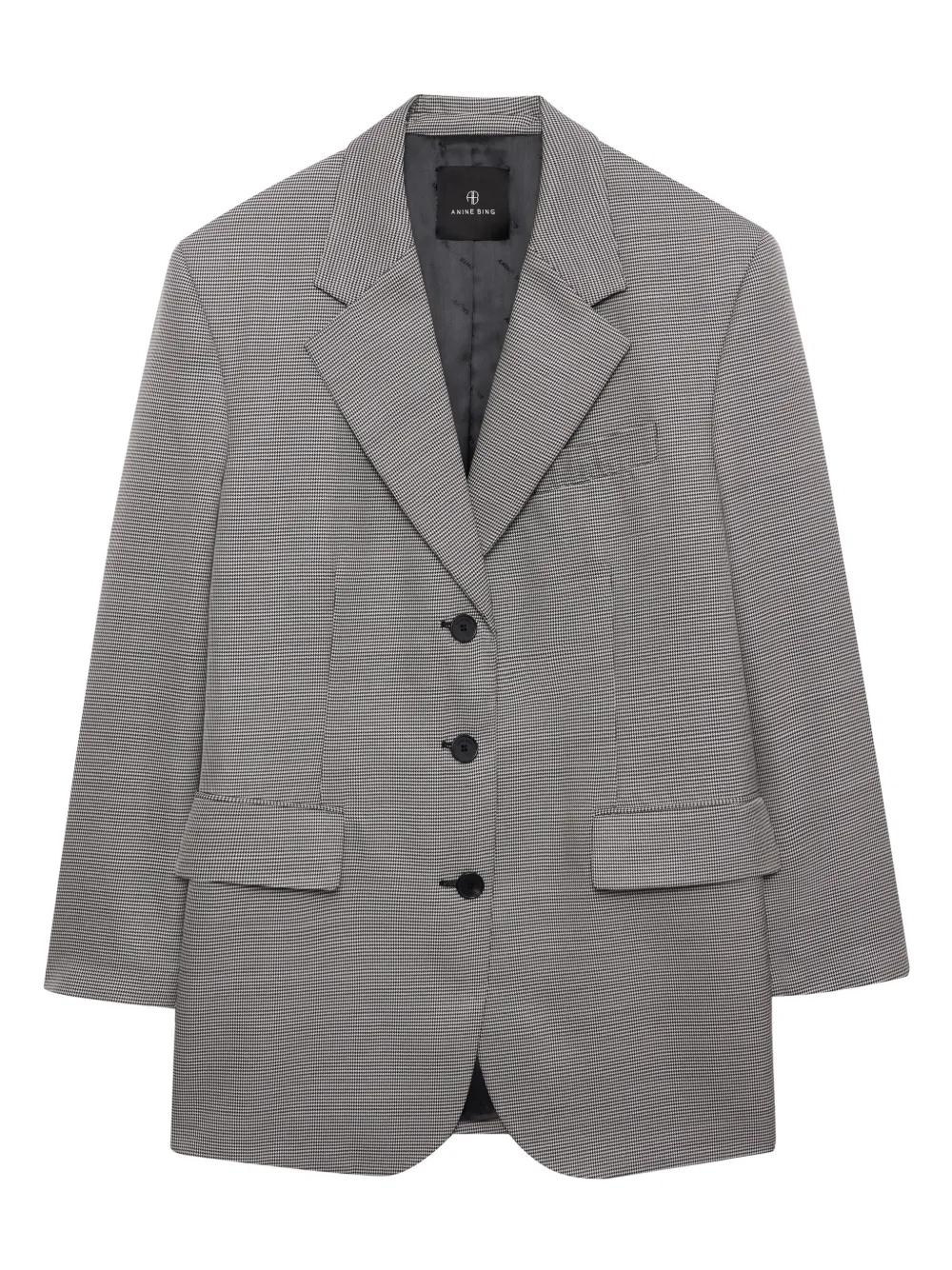black/white houndstooth print front button fastening chest welt pocket two front flap pockets American rear vent