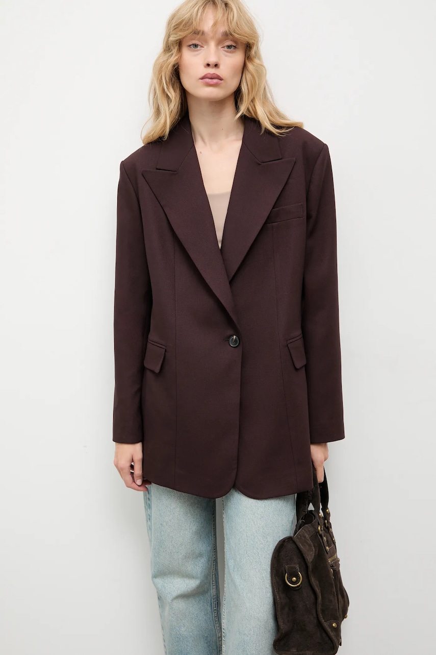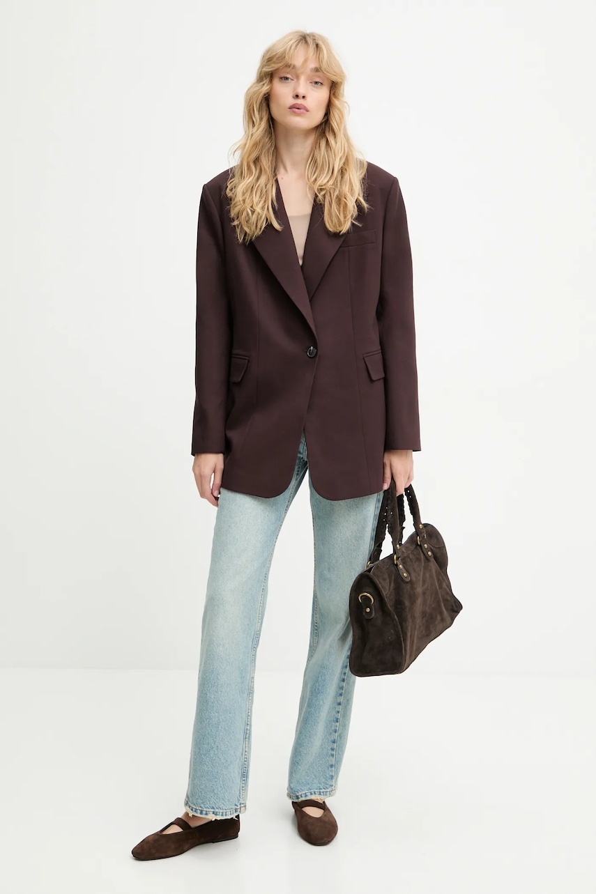 Answear.LAB marynarka kolor bordowy jednorzędowa gładka