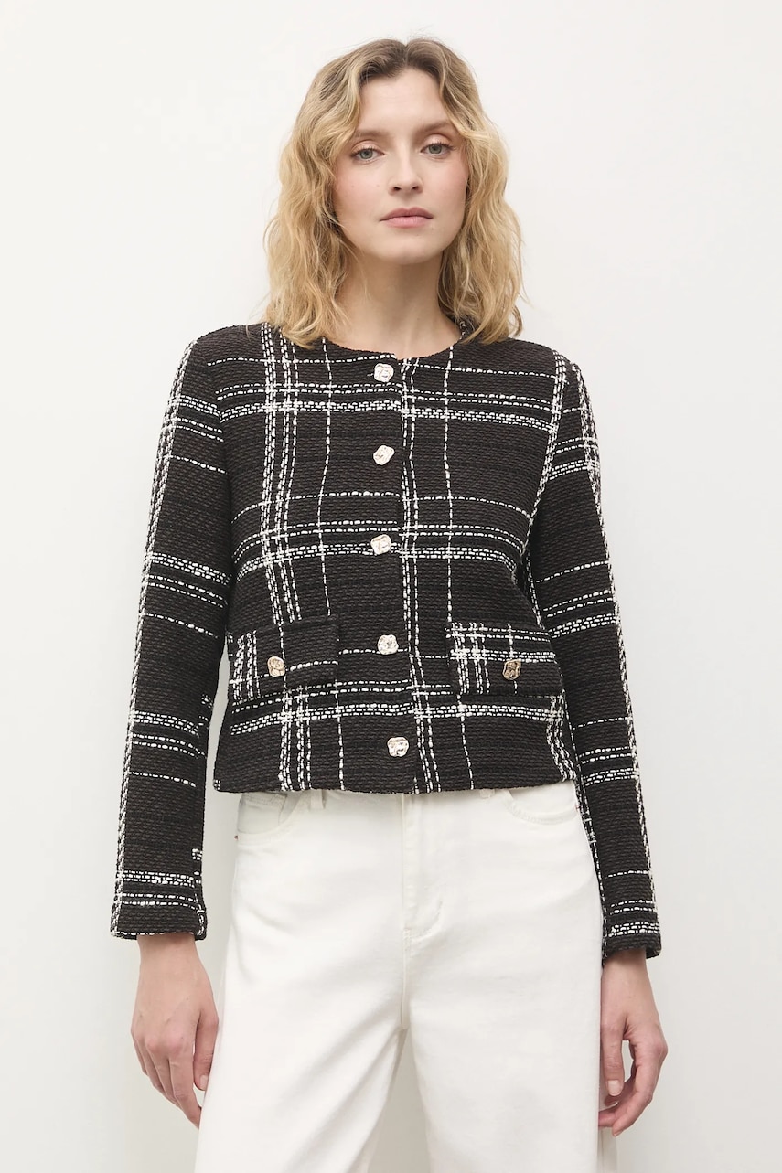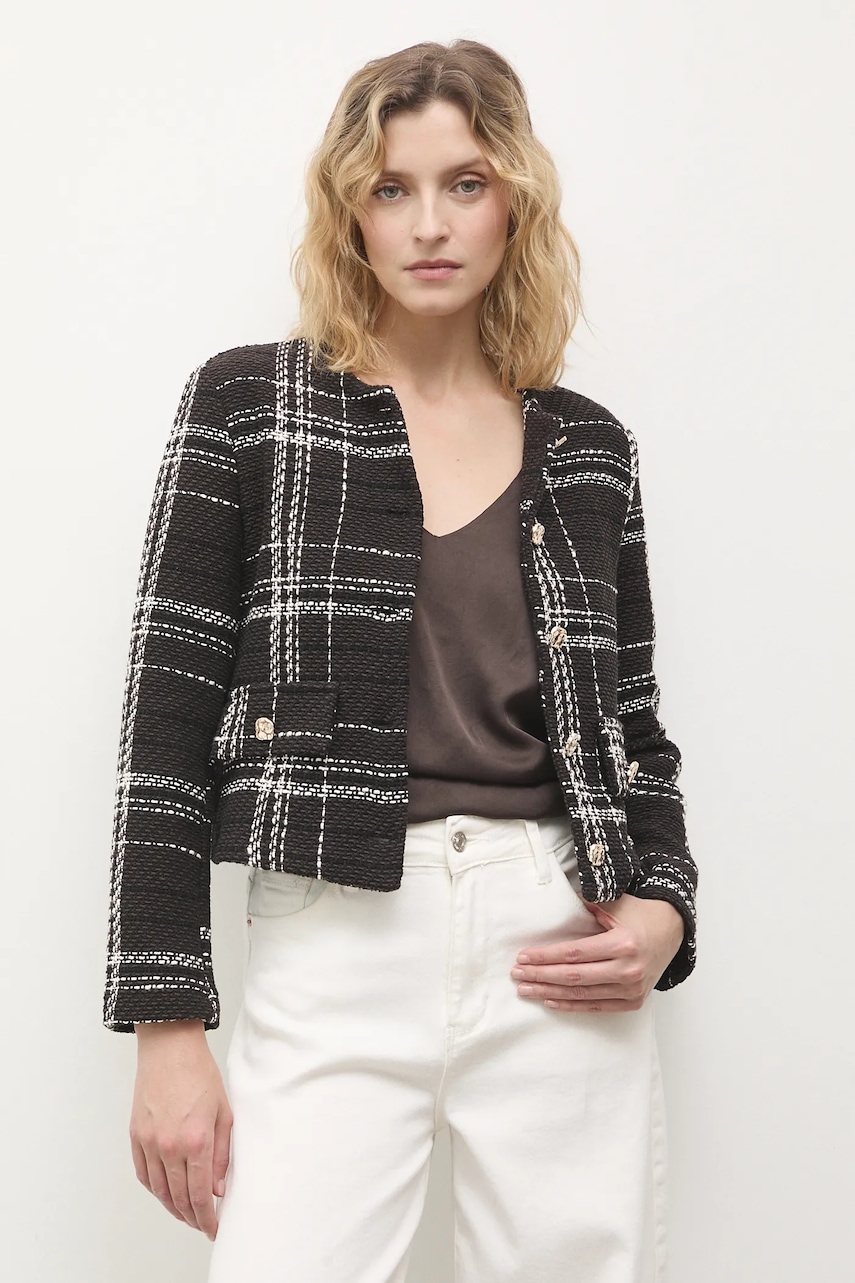 Answear.LAB marynarka kolor brązowy jednorzędowa wzorzysta
