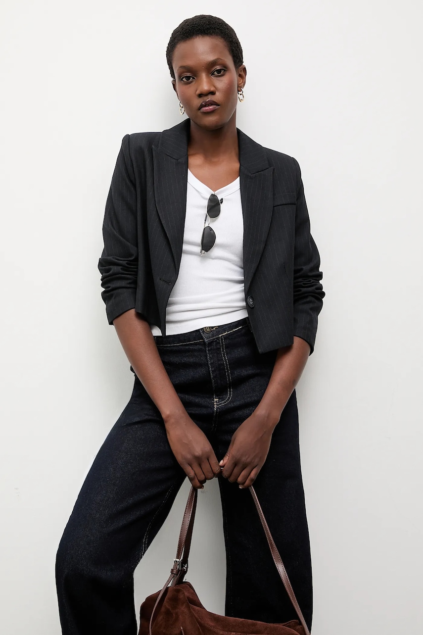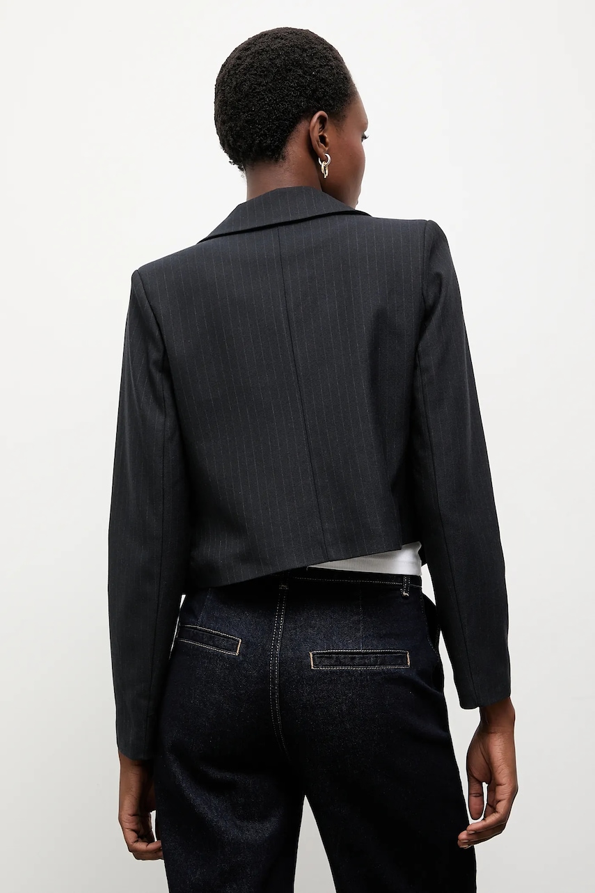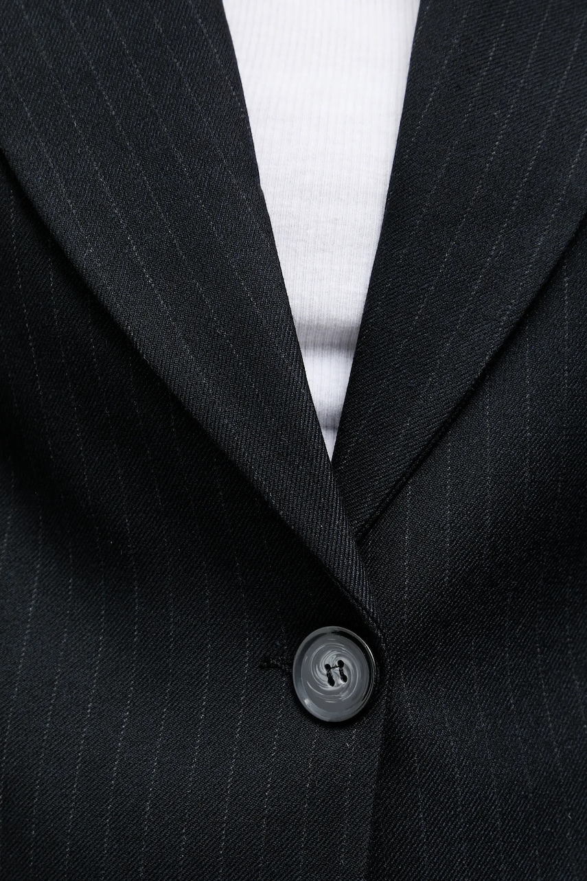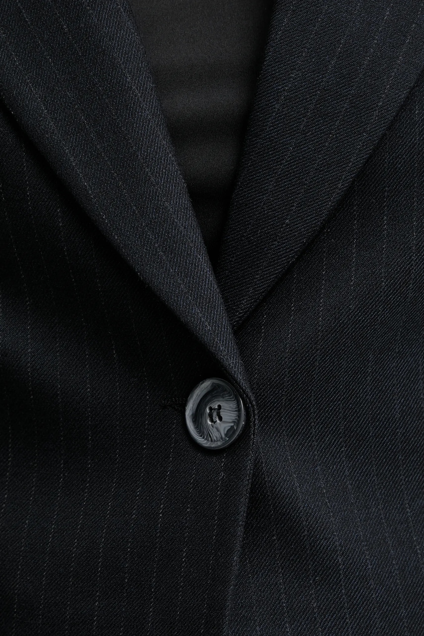 - Model na podszewce. - Zapięcie na guzik. - W ramiona wszyte poduszki. - Imitacja kieszeni na piersi. - Długość rękawa: 58 cm. - Długość: 45 cm. - Szerokość pod pachami: 47 cm. - Szerokość w ramionach: 35 cm. - Wymiary podane dla rozmiaru: S.