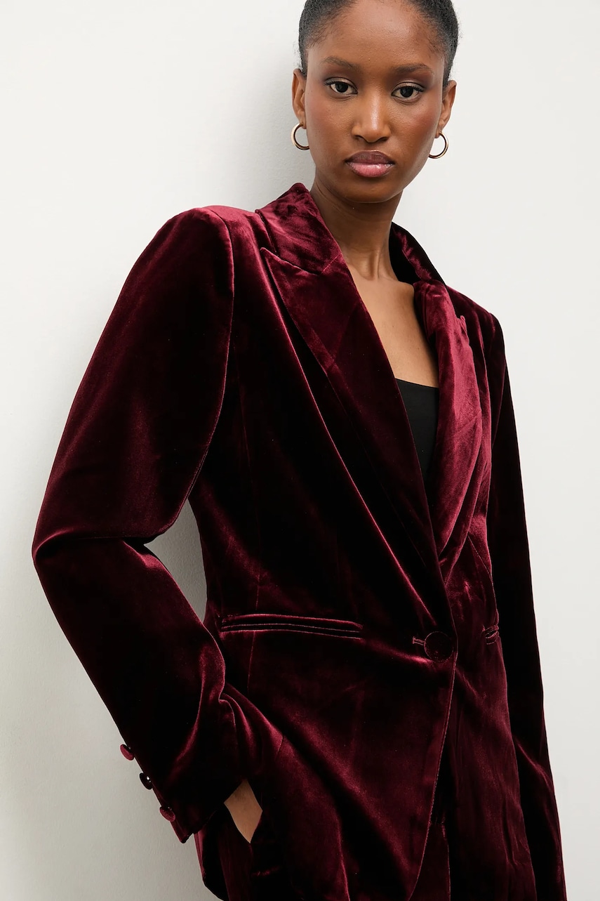 Answear.LAB marynarka welurowa kolor bordowy jednorzędowa gładka